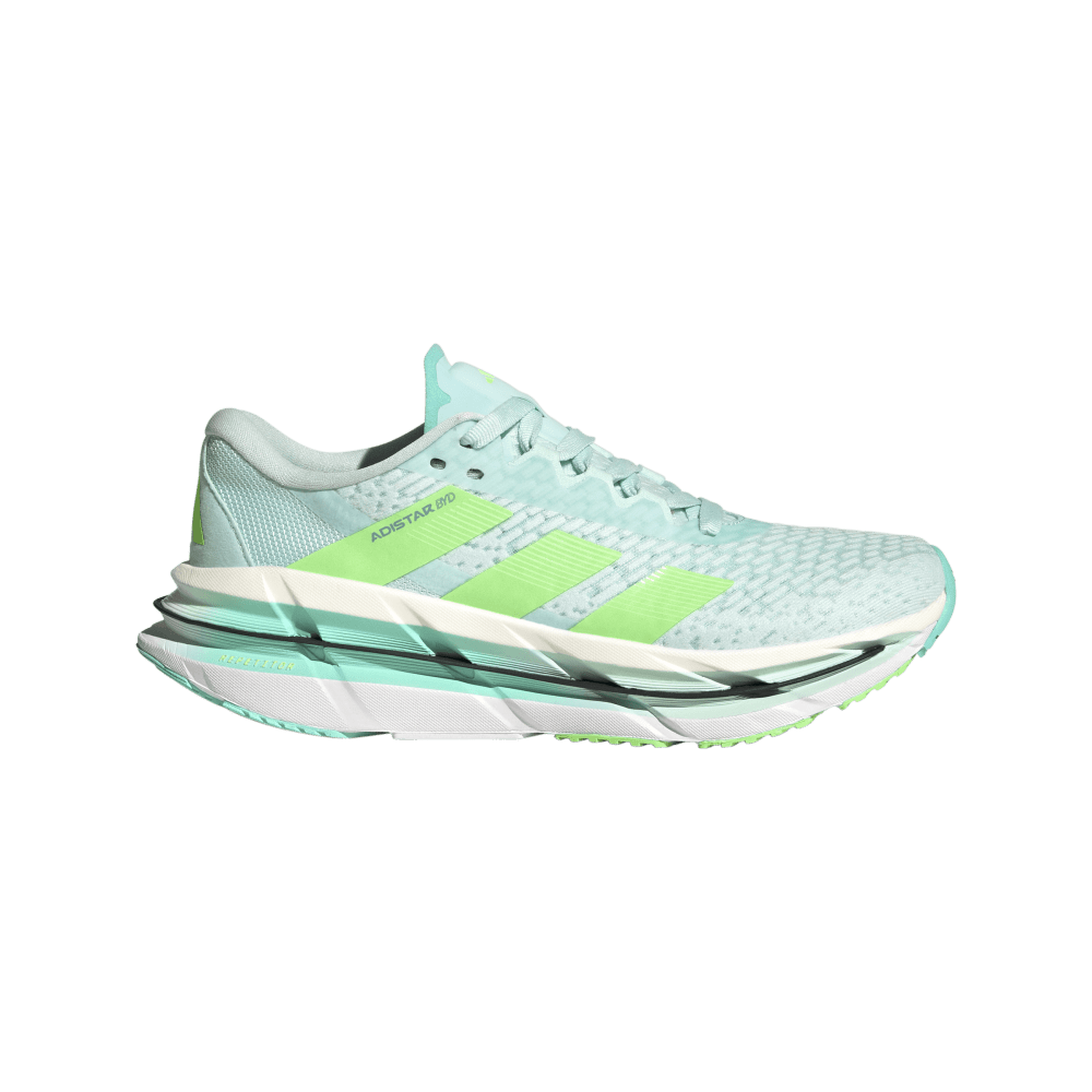 adidas ADISTAR BYD Laufschuhe Damen Langlebige Stabilität für deine längsten Distanzen. Der ADISTAR BYD von adidas ist dein perfekter Begleiter für lange Trainingsläufe und anspruchsvolle Langstrecken. Speziell für Läuferinnen entwickelt, die auf der Suche nach einem stabilen, aber dennoch dynamischen Schuh sind, überzeugt er durch reaktive Dämpfung, strukturierte Führung und zuverlässigen Halt – auch auf nassem Untergrund. Die innovative REPETITOR 2.0 Zwischensohle bietet eine ausgewogene Kombination aus Energierückgabe und Fersenstabilität. Ergänzt wird sie durch den leichten Lightstrike Pro Schaum und eine integrierte Distance Drive Platte mit Carbonfasern, die deinen Vortrieb unterstützt und gleichzeitig für ein geschmeidiges Abrollen sorgt. Das atmungsaktive Obermaterial sowie die strapazierfähige Continental™ Gummiaußensohle machen diesen Schuh zu einem echten Kilometerfresser. Produktdetails: REPETITOR 2.0 Zwischensohle für Stabilität und Energierückgabe Lightstrike Pro Dämpfung mit Carbon-verstärkter Distance Drive Platte Atmungsaktives Obermaterial aus Textil Continental™ Gummiaußensohle für starken Grip bei jedem Wetter Gewicht: 250 g (Größe EU 38 2/3) Sprengung: 6 mm (39 mm / 33 mm) Hergestellt mit mindestens 20 % recycelten Materialien Ideal für: Lange Distanzen | Asphalt | Stabile Performance bei jedem Tempo