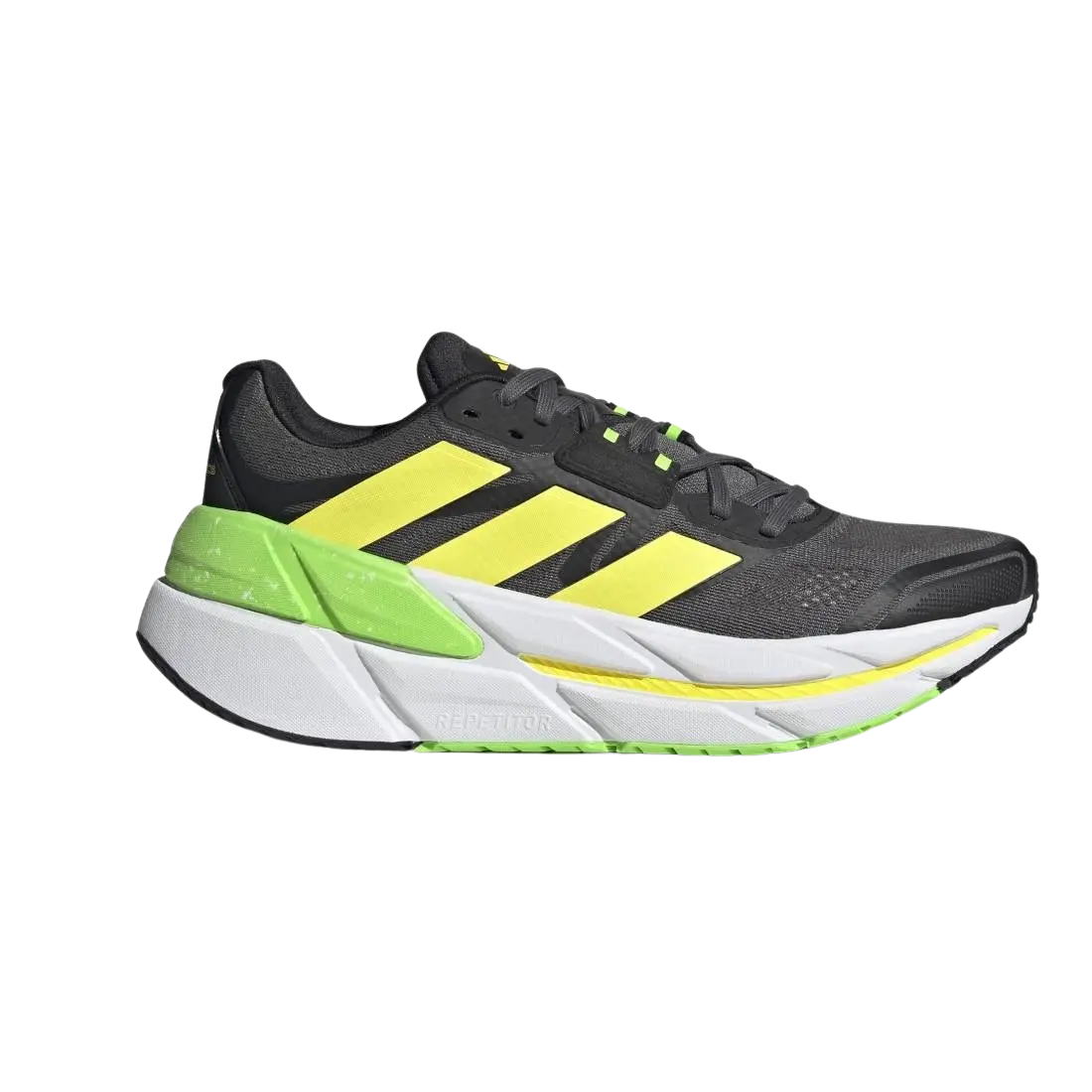 DIE KUNST DES LANGEN, LANGSAMEN LAUFS. Der adidas Adistar CS ist von der Idee fortwährender Bewegung inspiriert und unterstützt dich dabei, auf der Langstrecke neue Bestzeiten aufzustellen. Der auf Komfort und Stabilität getrimmte Schuh weist eine ausgeprägte Rundung im Vorfußbereich auf, die eine flüssige, durchgängige Abrollbewegung ermöglicht. Außerdem kommt der Schuh mit einem stabilisierenden Fersenbereich und Halt gebendem Obermaterial. Details zum adidas ADISTAR CS: Reguläre Passform Schnürsenkel Individuell gewebtes Obermaterial aus Mesh Innen liegender Cage Textilfutter REPETITOR+ Zwischensohle Gewicht: 320 g (Größe 42 2/3) Sprengung: 6 mm (Rückfußhöhe: 37 mm / Vorfußhöhe: 31 mm) Gummiaußensohle Obermaterial aus Garn mit mindestens 50 % Parley Ocean Plastic und 50 % recyceltem Polyester Farbe: Grey Five / Beam Yellow / Solar Green Artikelnummer: GX8418