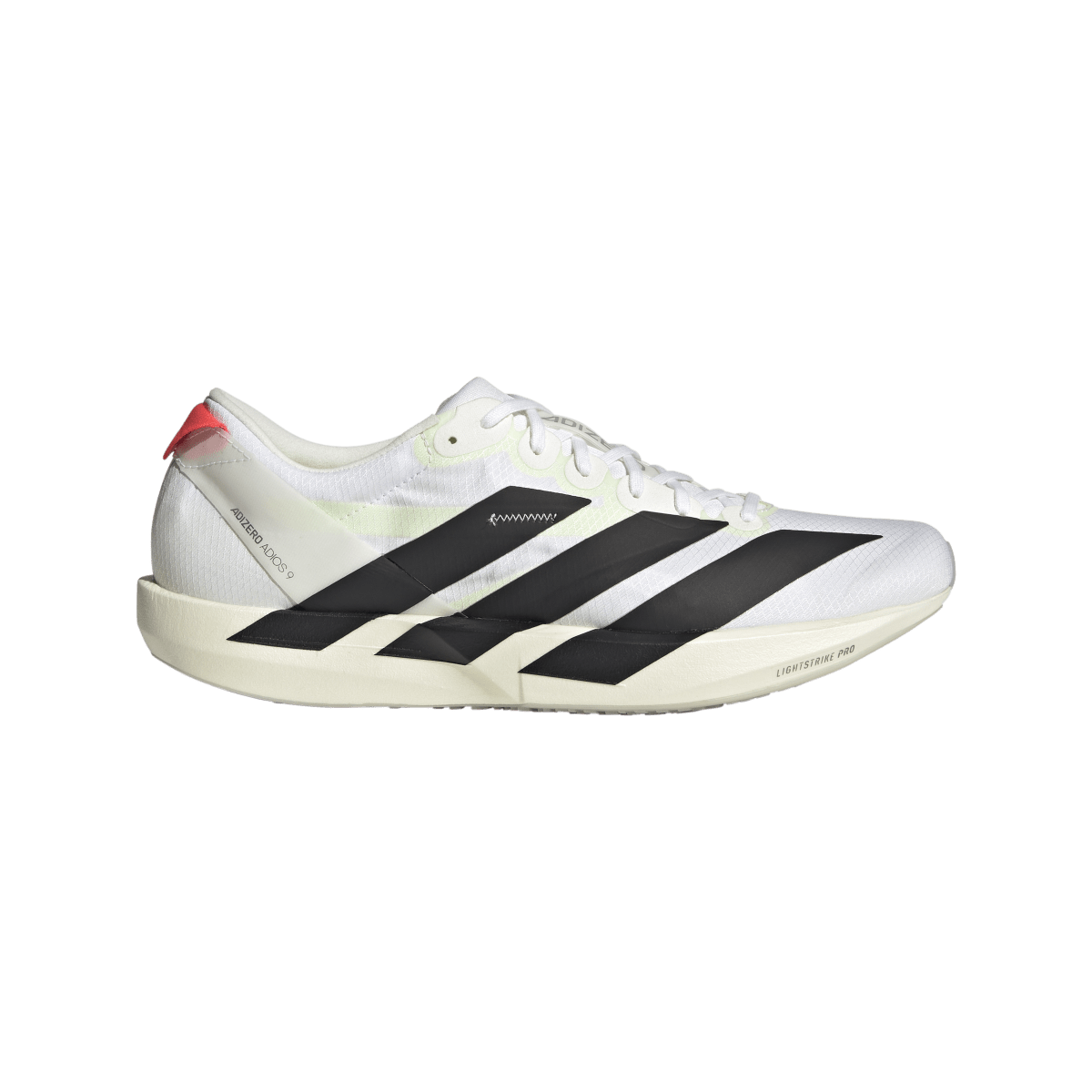 adidas Adizero Adios 9 M – Geschwindigkeit und Dynamik für den Wettkampf Der adidas Adizero Adios 9 M wurde für Läufer entwickelt, die Höchstgeschwindigkeit auf der Straße erreichen wollen. Mit seinem ultraleichten Design und der durchgehenden Lightstrike Pro Dämpfung bietet dieser Wettkampfschuh eine optimale Energierückgabe und ein dynamisches Abrollverhalten. Ein versteifendes Element in der Zwischensohle sorgt für zusätzliche Stabilität, während das stretchige Mesh-Obermaterial eine perfekte Passform und hohen Tragekomfort garantiert. Zusätzlich trägt der Schuh zur Nachhaltigkeit bei: Mindestens 20 % recycelte Materialien reduzieren Müll und schonen Ressourcen, ohne Kompromisse bei der Performance einzugehen. Produkteigenschaften: Lightstrike Pro Dämpfung : Ultraleicht, reaktionsfreudig und effizient. Versteifendes Element in der Zwischensohle : Unterstützt ein dynamisches Abrollen. Atmungsaktives Mesh-Obermaterial : Flexibel und passgenau für optimalen Halt. Gummiaußensohle : Langlebig und griffig für maximalen Vortrieb. Sprengung : 7 mm (27 mm Ferse / 20 mm Vorfuß), Gewicht : 177 g (Größe 42 2/3). Ob für den nächsten Wettkampf oder schnelle Trainingseinheiten – der adidas Adizero Adios 9 M bringt dich mit Leichtigkeit und Speed ins Ziel.