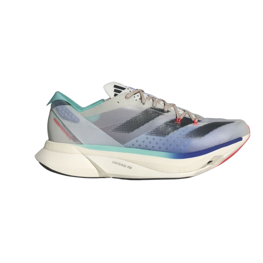 adidas Adizero Adios Pro 3 – Maximale Geschwindigkeit für neue Bestzeiten Der adidas Adizero Adios Pro 3 wurde für ambitionierte Langstreckenläufer entwickelt, die ihre Performance auf das nächste Level bringen möchten. Mit einer überarbeiteten Lightstrike Pro-Zwischensohle und optimierten ENERGYRODS 2.0 liefert dieser Wettkampfschuh das perfekte Zusammenspiel aus Dämpfung, Steifigkeit und Energierückgabe – für maximale Effizienz auf der Strecke. Das leichte Obermaterial bietet gezielten Halt in strategischen Bereichen, während die Continental™ Gummi-Außensohle für hervorragende Traktion sorgt – selbst in schnellen Kurven oder bei wechselnden Bedingungen. Mit seinem innovativen Design und optimierten Technologien hilft dir der Adizero Adios Pro 3, dein Speed-Limit zu durchbrechen. Produkteigenschaften: Lightstrike Pro-Dämpfung : Zwei Schichten für maximale Energierückgabe bei langen Distanzen. ENERGYRODS 2.0 : Reduzieren Energieverlust und verbessern die Laufökonomie. Leichtes Obermaterial : Bietet Stabilität und Atmungsaktivität in entscheidenden Bereichen. Continental™ Gummi-Außensohle : Optimale Traktion für schnelle Richtungswechsel. Schnürsystem : Sorgt für eine sichere Passform. Sprengung : 6,5 mm (Rückfußhöhe: 39,5 mm / Vorfußhöhe: 33 mm), Gewicht : 215 g. Ob für Marathonläufe oder intensive Wettkämpfe – der adidas Adizero Adios Pro 3 wurde entwickelt, um neue Rekorde zu brechen und Bestzeiten zu erreichen.