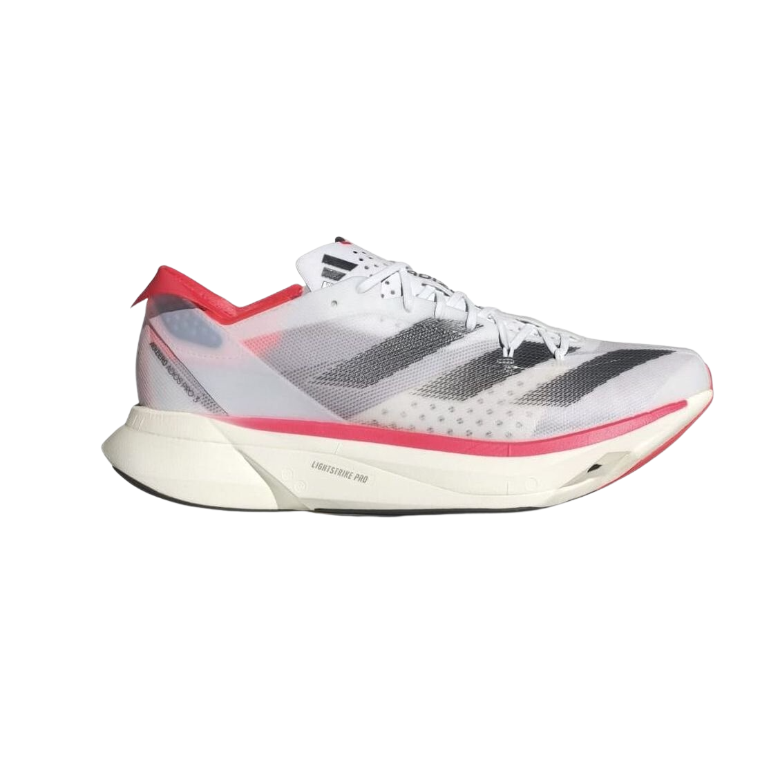 adidas Adizero Adios Pro 3 – Maximale Geschwindigkeit für neue Bestzeiten Der adidas Adizero Adios Pro 3 wurde für ambitionierte Langstreckenläufer entwickelt, die ihre Performance auf das nächste Level bringen möchten. Mit einer überarbeiteten Lightstrike Pro-Zwischensohle und optimierten ENERGYRODS 2.0 liefert dieser Wettkampfschuh das perfekte Zusammenspiel aus Dämpfung, Steifigkeit und Energierückgabe – für maximale Effizienz auf der Strecke. Das leichte Obermaterial bietet gezielten Halt in strategischen Bereichen, während die Continental™ Gummi-Außensohle für hervorragende Traktion sorgt – selbst in schnellen Kurven oder bei wechselnden Bedingungen. Mit seinem innovativen Design und optimierten Technologien hilft dir der Adizero Adios Pro 3, dein Speed-Limit zu durchbrechen. Produkteigenschaften: Lightstrike Pro-Dämpfung : Zwei Schichten für maximale Energierückgabe bei langen Distanzen. ENERGYRODS 2.0 : Reduzieren Energieverlust und verbessern die Laufökonomie. Leichtes Obermaterial : Bietet Stabilität und Atmungsaktivität in entscheidenden Bereichen. Continental™ Gummi-Außensohle : Optimale Traktion für schnelle Richtungswechsel. Schnürsystem : Sorgt für eine sichere Passform. Sprengung : 6,5 mm (Rückfußhöhe: 39,5 mm / Vorfußhöhe: 33 mm), Gewicht : 215 g. Ob für Marathonläufe oder intensive Wettkämpfe – der adidas Adizero Adios Pro 3 wurde entwickelt, um neue Rekorde zu brechen und Bestzeiten zu erreichen.