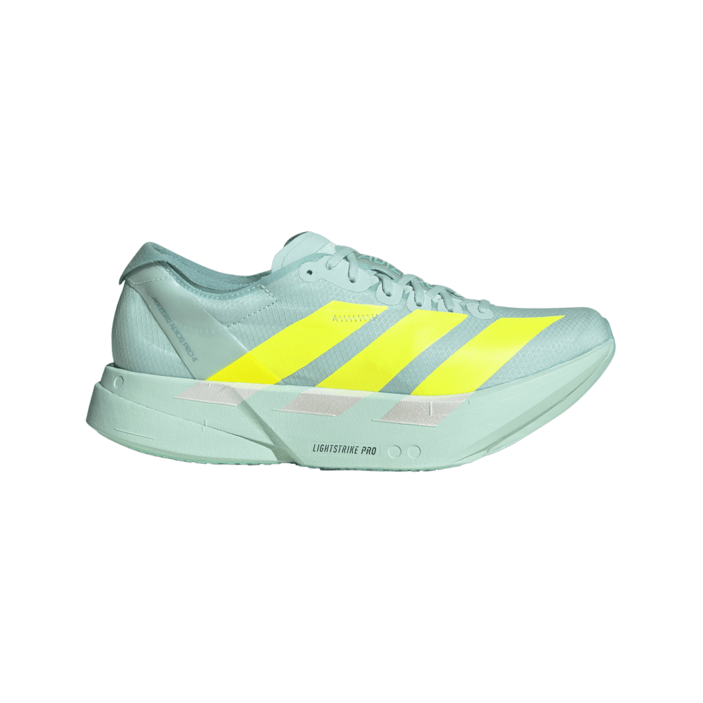 adidas Adizero Adios Pro 4 Damen – Marathon-Performance in ihrer reinsten Form Der adidas Adizero Adios Pro 4 Damen definiert Effizienz und Geschwindigkeit im Langstreckenlauf neu. Entwickelt für ambitionierte Läuferinnen, kombiniert er maximale Energierückgabe, Dämpfung und Stabilität – ideal für Distanzen bis zum Marathon. Die LIGHTSTRIKE PRO Zwischensohle liefert reaktionsfreudige Dynamik bei minimalem Gewicht, während das ENERGYROD 2.0-System aus Carbonfaserstäben den Vortrieb optimiert und die Laufökonomie verbessert. Das ADIZERO LIGHTLOCK Obermaterial aus 94 % recyceltem Polyester umschließt den Fuß mit präzisem Halt und leichtem 1-Wege-Stretch. Für zuverlässige Traktion sorgt die LIGHTTRAXION Außensohle in Kombination mit Continental™ Rubber – für sicheren Grip bei trockenen und nassen Bedingungen. Das Ergebnis ist ein Wettkampfschuh, der Stabilität, Leichtigkeit und Performance in Perfektion vereint. Deine Vorteile im Überblick LIGHTSTRIKE PRO: Ultraleichte, reaktive Dämpfung mit maximaler Energierückgabe ENERGYROD 2.0: Carbonfaserverstärkte Stäbe für effizienten Vortrieb LIGHTLOCK Obermaterial: Passgenau, atmungsaktiv und recycelt LIGHTTRAXION Außensohle: Leicht, griffig und stabil bei jedem Schritt Continental™ Rubber: Sicherer Grip auf nasser und trockener Strecke Nachhaltigkeit: 94 % recycelter Polyester im Obermaterial Technische Details Gewicht: ca. 165 g Sprengung: 6 mm (Ferse 39 mm / Vorfuß 33 mm) Dämpfung: LIGHTSTRIKE PRO Foam Platte: ENERGYROD 2.0 – Carbonfaserverstärkte Polymerstruktur Außensohle: LIGHTTRAXION + Continental™ Rubber Obermaterial: ADIZERO LIGHTLOCK Mesh (94 % recycelter Polyester) Laufstil: Neutral / Straße / Wettkampf Der adidas Adizero Adios Pro 4 Damen ist der ultimative Wettkampfschuh für Marathonläuferinnen – federleicht, reaktiv und entwickelt für persönliche Bestzeiten.