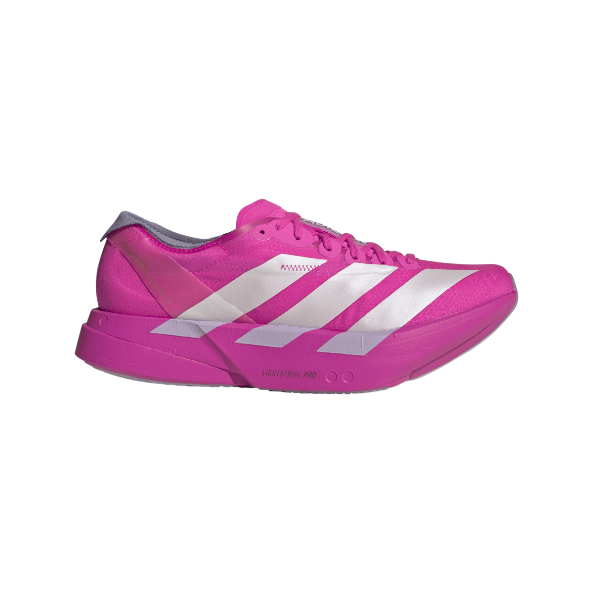 adizero adios Pro 4 – Designed to Break Records Der adizero adios Pro 4 ist die nächste Evolutionsstufe in der Welt des Laufsports. Entwickelt im Innovation Lab von adidas in Herzogenaurach, Deutschland, und ausgiebig getestet mit Konsumenten und Spitzensportlern weltweit, bringt dieser Schuh Spitzentechnologie auf die Strecke. Mit bahnbrechenden Updates wie der Vorfuß-Rocker-Point-Geometrie, einer durchgehenden LIGHTSTRIKE PRO Zwischensohle und einem innovativen Obermaterial ist er dein Schlüssel zu neuen Bestzeiten. Was macht den adizero adios Pro 4 so revolutionär? NEW FOREFOOT ROCKER POINT GEOMETRY : Inspiriert vom adizero adios Pro Evo 1, ist der Vorfuß-Rocker bei 60 % der Länge des Schuhs positioniert. Dies verbessert den Vortrieb und die Laufeffizienz spürbar. LIGHTLOCK UPPER : Das leichte, dehnbare Mesh-Obermaterial sorgt für eine perfekte Passform, unterstützt durch interne Verschlussbänder und ein neues Schnürsystem für maximalen Halt. LIGHTTRAXION OUTSOLE : Präzise platzierte Grippelemente, die auf Daten führender Athleten basieren, bieten optimalen Halt genau dort, wo er gebraucht wird. Technische Details: Zwischensohle : Durchgehende LIGHTSTRIKE PRO für ein weiches, leichtes Laufgefühl Obermaterial : Einseitig dehnbares gewebtes Mesh mit internen Stützsystemen Außensohle : Strukturierte LIGHTTRAXION für zuverlässigen Grip Einsatzbereich : Wettkämpfe und Tempoläufe Gewicht: 174 g Sprengung: 6 mm Mit dem adizero adios Pro 4 erreichst du deine Grenzen – und brichst sie. Designed to Break Records.