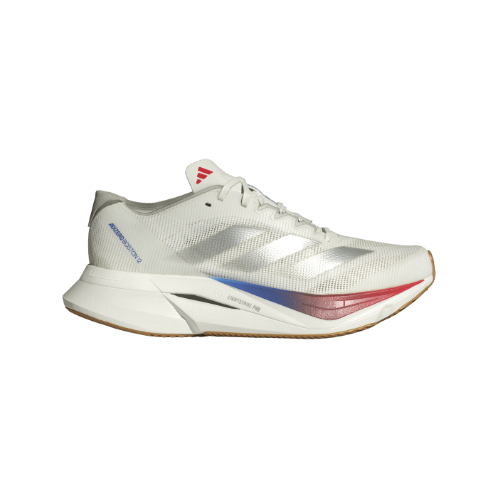 Mit dem adidas ADIZERO BOSTON 12 hast du den perfekten Begleiter für deine schnellen Trainingseinheiten. Mentale Stärke hilft dir, deine Trainingseinheiten auf die Spitze zu treiben, damit du am Renntag auf die härtesten Herausforderungen vorbereitet bist. Der adidas Adizero Boston 12 unterstützt dich bei der Entwicklung von Ausdauer und Kraft mit einer superleichten Lightstrike-Dämpfung – unserer widerstandsfähigsten. Die Laufschuhe arbeiten mit energiesparenden ENERGYRODS 2.0 und bieten ein ganzheitliches System aus abgestimmter Energieübertragung und einem treibenden Laufgefühl. Sie sind ideal für Tempoläufe und Geschwindigkeitstraining auf der Bahn. Das Obermaterial wurde aus einer Reihe von recycelten Materialien hergestellt und besteht zu mindestens 50 % aus recyceltem Material. Weitere Merkmale des adidas ADIZERO BOSTON 12 für Damen: Normale Passform Schnürverschluss Obermaterial aus leichtem Mesh Textilfutter ENERGYRODS begrenzen den Energieverlust Lightstrike Pro-Dämpfung Gewicht: 271g Sprengung: 6mm