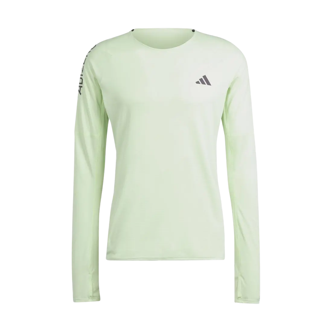 Das adidas ADIZERO RUNNING LONGSLEEVE für Herren – Erreiche deine Laufziele ohne Ablenkung mit dem adidas Longsleeve. Als leichte Zusatzschicht ist es perfekt für dein Training geeignet. Dank der feuchtigkeitsabsorbierenden AEROREADY Technologie bleibst du auch bei höchster Anstrengung angenehm trocken. Zusätzlich sorgen strategisch platzierte Nähte für ein reibungsarmes Trageerlebnis. Das Produkt ist Teil unseres Engagements gegen Plastikmüll und hat einen Recyclinganteil von mindestens 70 %. Details zum adidas ADIZERO RUNNING LONGSLEEVE für Herren: Schmale Passform Rundhalsausschnitt 100 % recyceltes Polyester (doppelt gestrickt) Leichtes Material AEROREADY: Lässt Feuchtigkeit keine Chance und hält trocken – keine Ablenkung, nur Komfort Reflektierendes Branding: Für bessere Sichtbarkeit bei Nacht Daumenlöcher Weniger Nähte Farbe: Semi Green Spark / Aurora Black Pflegehinweise: Nicht bleichen Keinen Weichspüler verwenden Von innen nach außen waschen Nur Feinwaschmittel verwenden Mit gleichen Farben waschen Nicht bügeln Nicht chemisch reinigen Maschinenwäsche warm