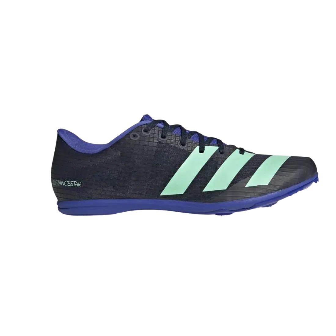 adidas DISTANCESTAR Unisex Laufschuhe mit Spikes Egal, über welche Distanz – du willst gewinnen. Dieser adidas Spike-Schuh garantiert dir einen sicheren Sitz, wenn du an den anderen vorbeiziehst. Er ist für 400- bis 5000-m-Läufe designt und hat ein flexibles, Halt gebendes Obermaterial. Eine Schicht Lightstrike Pro im Vorfußbereich sorgt außerdem für ein dynamisches Abrollverhalten. Weitere Details des Adidas Distancestar Laufschuh mit Spikes: Ein leichter Spike-Schuh mit Recycling-Anteil. CBLACK/BEAMYE/SGREEN Schnürsenkel Obermaterial aus Textil Textilfutter Lightstrike Pro Dämpfung Synthetik-Außensohle RECYCLED MATERIALS BASE – REC CONTENT