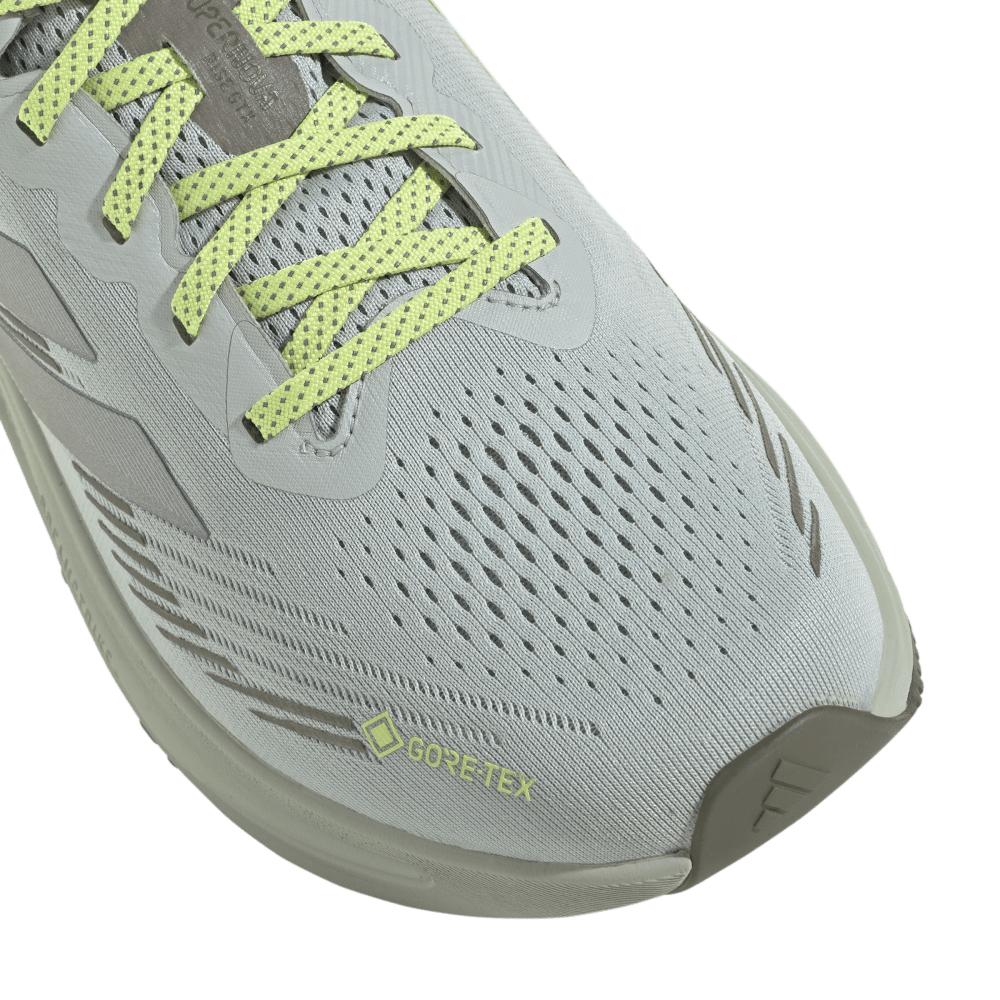 adidas Supernova Rise GTX Herren – Wetterfester Komfort für dein Training Der adidas Supernova Rise GTX ist dein verlässlicher Partner für Läufe bei Wind, Regen und wechselhaften Bedingungen. Dank der GORE-TEX® Invisible Fit Membran bleibt der Schuh wasserdicht und atmungsaktiv zugleich – für trockene Füße und ein angenehmes Klima auf jedem Kilometer. Die Dreamstrike+ Zwischensohle in Kombination mit den Support Rods bietet dir eine ausgewogene Mischung aus Dämpfung, Reaktivität und Stabilität. Ergänzt durch die Continental™ Rubber Außensohle profitierst du von sicherem Grip auf nassen und rutschigen Untergründen. Mit einem Gewicht von nur 299 g und einer Sprengung von 9 mm ist dieser Schuh der robuste Allrounder für dein tägliches Training. Deine Vorteile im Überblick Wasserdicht dank GORE-TEX® Invisible Fit Membran Dreamstrike+ Zwischensohle für reaktiven Laufkomfort Support Rods für ein stabiles und geschmeidiges Abrollen Continental™ Rubber Außensohle mit starkem Grip auf nassen Strecken Sprengung: 9 mm Gewicht: ca. 299 g Der adidas Supernova Rise GTX Herren bietet dir Komfort, Stabilität und Wetterschutz – die perfekte Wahl für zuverlässiges Training bei Regen und Kälte.
