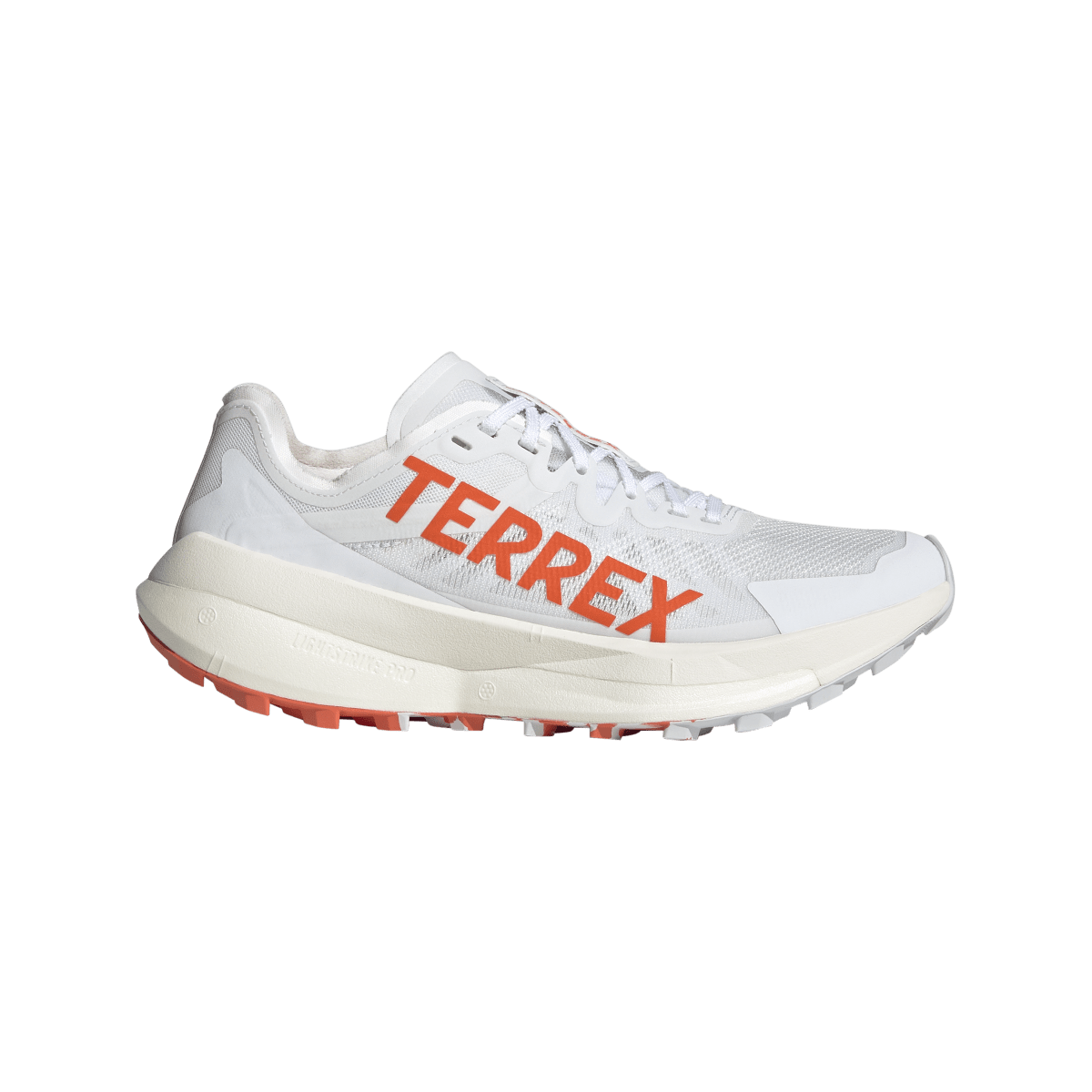 adidas Terrex Agravic Speed W – Leichtigkeit und Grip für schnelle Trail-Abenteuer Der adidas Terrex Agravic Speed W wurde für schnelle Trailläufe und Wettkämpfe entwickelt. Sein atmungsaktives Obermaterial passt sich deinem Fuß perfekt an und sorgt für ein angenehmes Tragegefühl auf unterschiedlichem Terrain. Abriebfeste Overlays erhöhen die Strapazierfähigkeit, während die mit dem Obermaterial verbundene Zunge das Eindringen von Steinchen und Schmutz verhindert. Die Lightstrike Pro Dämpfung sorgt für ein leichtes und dynamisches Laufgefühl, während das Rocker-Sohlendesign ein geschmeidiges Abrollen unterstützt. Dank der grob profilierten Continental™ Gummi-Außensohle bietet der Schuh zuverlässigen Grip auf trockenen, nassen und felsigen Untergründen. Zudem besteht der Schuh zu mindestens 20 % aus recycelten und erneuerbaren Materialien , um Ressourcen zu schonen. Produkteigenschaften: Lightstrike Pro Dämpfung : Leicht, reaktionsfreudig und komfortabel. Mit dem Obermaterial verbundene Zunge : Verhindert das Eindringen von Schmutz und Steinchen. Atmungsaktives Textil-Obermaterial : Sorgt für eine optimale Passform und Belüftung. Reflektierende Details : Für bessere Sichtbarkeit in der Dämmerung. Continental™ Gummi-Außensohle : Maximaler Grip auf verschiedensten Untergründen. Sprengung : 7 mm (Rückfußhöhe: 33 mm / Vorfußhöhe: 26 mm), Gewicht : 190 g (Größe 38 2/3). Leicht, schnell und griffig – der adidas Terrex Agravic Speed W ist der ideale Begleiter für Trailrunnerinnen, die auf Tempo und Performance setzen.