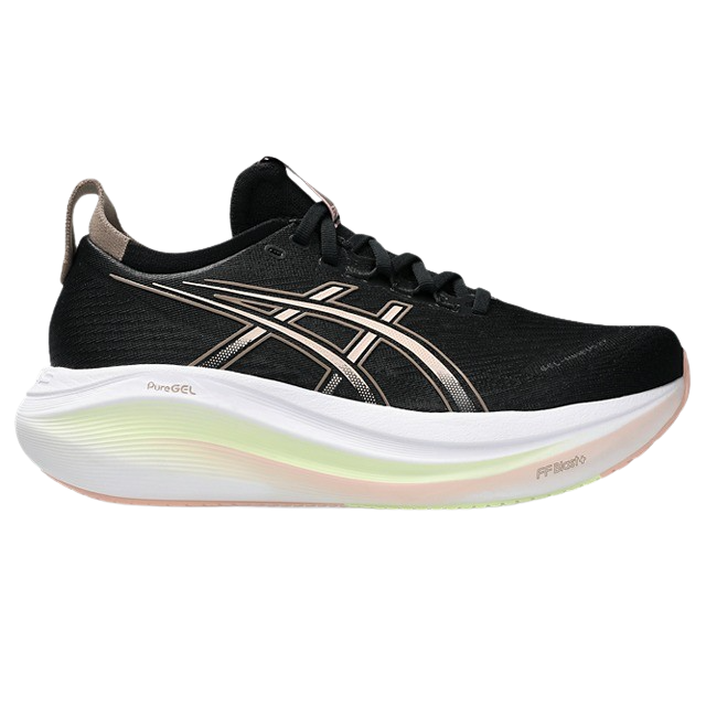 ASICS GEL-NIMBUS 27 Damen – Luxuriöser Komfort für lange Laufstrecken Der ASICS GEL-NIMBUS 27 für Damen wurde speziell entwickelt, um dir bei jedem Lauf maximalen Komfort und eine herausragende Dämpfung zu bieten. Ob auf langen Strecken oder entspannten Trainingsrunden – dieser Neutralschuh sorgt für ein geschmeidiges Laufgefühl und reduziert Belastungen auf deine Gelenke. Die innovative Kombination aus PureGEL™-Technologie im Rückfußbereich und dem besonders leichten FF BLAST™ PLUS ECO Foam in der Zwischensohle bietet dir ein weiches, aber dennoch reaktives Laufgefühl. Das neue, atmungsaktive Engineered Jacquard Mesh-Obermaterial passt sich optimal deiner Fußform an und hält deine Füße angenehm kühl. Der weich gepolsterte Rippenstrick-Kragen sorgt zusammen mit der integrierten Zuglasche für ein müheloses An- und Ausziehen. Die strapazierfähige Hybrid-ASICSGRIP™-Außensohle bietet dir optimalen Grip und langlebige Stabilität auf unterschiedlichsten Straßenbelägen. Mit seinem nachhaltigen Design unterstützt dich der GEL-NIMBUS 27 nicht nur bei jedem Schritt, sondern auch beim Schutz unserer Umwelt. Erlebe jetzt den unvergleichlichen Komfort, der dich bei jeder Laufeinheit begleitet. Produktdetails des ASICS GEL-NIMBUS 27 Damen: PureGEL™-Technologie im Rückfußbereich: Sanfte Dämpfung für gelenkschonende Landungen FF BLAST™ PLUS ECO Foam: Ultraleichte und reaktive Dämpfung mit biobasierten Materialien Engineered Jacquard Mesh-Obermaterial: Hohe Atmungsaktivität für ein angenehmes Fußklima Rippenstrick-Kragen mit Zuglasche: Für müheloses An- und Ausziehen und optimalen Komfort Hybrid ASICSGRIP™-Außensohle: Hervorragende Traktion und Strapazierfähigkeit OrthoLite™ X-55 Einlegesohle: Zusätzlicher Komfort und verbesserte Feuchtigkeitsregulierung Wing-Fit-System der Zunge: Anpassungsfähige Passform und reduziertes Verrutschen der Zunge Nachhaltiges Design: 100 % recyceltes Obermaterial und reduzierte CO2-Emissionen bei der Herstellung Sprengung: 8 mm Gewicht: 265 g (Größe 39) Dämpfung: Maximal (ideal für Neutral- und Unterpronierer) Mit dem ASICS GEL-NIMBUS 27 Damen genießt du bei jedem Lauf ein unvergleichlich weiches und stabiles Laufgefühl – für mehr Leichtigkeit, Komfort und Freude auf jeder Strecke.