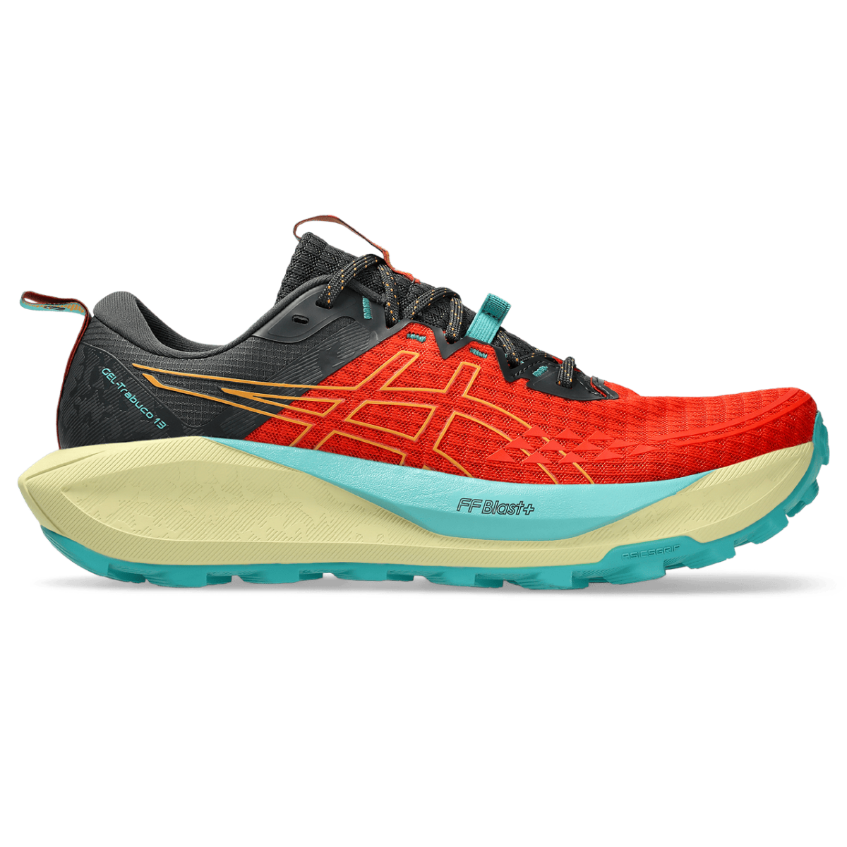 ASICS GEL-Trabuco 13 – Perfektion für anspruchsvolle Trails Der ASICS GEL-Trabuco 13 für Herren ist der ideale Trailrunningschuh für anspruchsvolle Strecken und vielseitiges Gelände. Dieser Schuh kombiniert innovative Technologien mit einem durchdachten Design, um dir bei jedem Lauf optimalen Komfort, Schutz und Stabilität zu bieten. Die FF BLAST™ PLUS ECO Dämpfung in der Zwischensohle sorgt für ein leichtes, energiegeladenes Laufgefühl, während die GEL-Technologie im Fersenbereich weiche Landungen und angenehmen Tragekomfort gewährleistet. Eine integrierte Steinschutzplatte schützt deine Füße zuverlässig vor spitzen Steinen und Unebenheiten, sodass du dich voll auf deinen Lauf konzentrieren kannst. Dank der überarbeiteten ASICSGRIP™ Außensohle genießt du verbesserten Grip und Stabilität – auch auf anspruchsvollem oder rutschigem Terrain. Das atmungsaktive Mesh-Obermaterial und der Sandschutz sorgen dafür, dass deine Füße trocken und sauber bleiben, selbst bei intensiven Trail-Abenteuern. Produktdetails Atmungsaktives Mesh-Obermaterial für hohen Tragekomfort Obermaterial besteht zu mindestens 50 % aus recycelten Materialien GEL-Technologie im Fersenbereich für weiche Dämpfung FF BLAST™ PLUS ECO Dämpfung für leichte Landungen und kraftvollen Abstoß ASICSGRIP™ Außensohle für hervorragenden Grip auf unterschiedlichsten Untergründen Steinschutzplatte für zusätzlichen Schutz im Gelände Schnürsystem, das ein Lösen der Schnürsenkel verhindert Sandschutz, der Schmutz vom Schuhinneren fernhält Reflektierende Details für bessere Sichtbarkeit Sprengung: 8 mm Gewicht: 285 g Nachhaltig: Hergestellt mit recycelten Materialien und ohne tierische Bestandteile (vegan) Der ASICS GEL-Trabuco 13 ist der ideale Begleiter für Trail-Läufer, die Wert auf Komfort, Schutz und Nachhaltigkeit legen – ein Schuh, der auf jedem Terrain überzeugt.