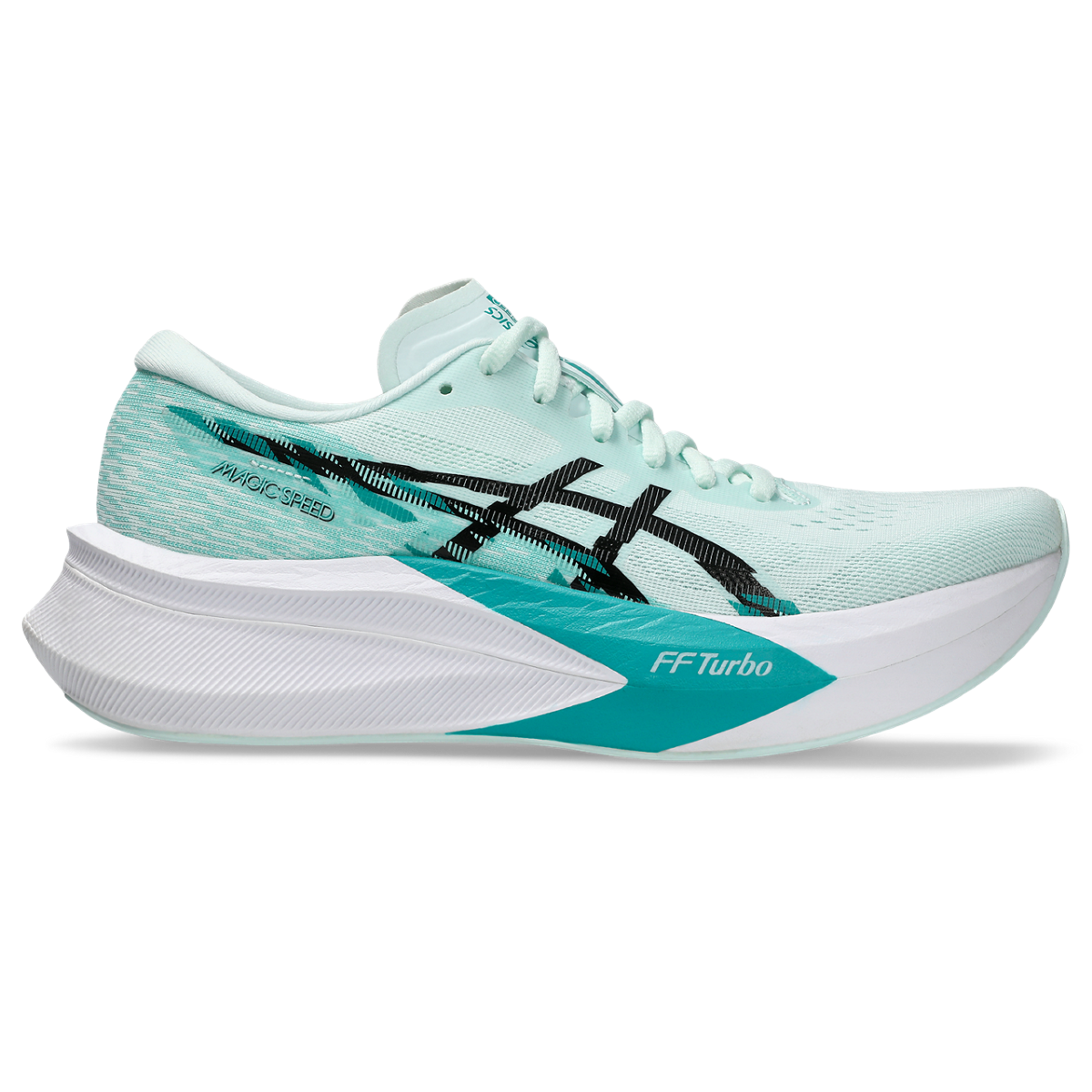Der asics MAGIC SPEED 4 – Für High-Pace-Trainings und Wettkämpfe Der ASICS Magic Speed 4 ist das ultimative Werkzeug für High-Pace-Trainings und Wettkämpfe. Die Kombination aus FF Blast+ und FF Turbo in der Zwischensohle sorgt für ein turbogeladenes Lauferlebnis mit extra Schwung. Die vollständige Carbonplatte zwischen den Zwischensohlen sorgt für ultimative Stabilität und Vortrieb, damit du noch schneller laufen kannst. Das leichte Obermaterial bietet hervorragende Atmungsaktivität und hält deinen Fuß bei jedem Tempo stabil im Schuh und die strategisch platzierte ASICSGrip Außensohle ist hochgriffig und bietet exzellenten Halt und Traktion, wenn du so richtig Gas gibst. Updates des asics MAGIC SPEED 4 zum Magic Speed 3: FF Turbo Insert: Das neue FF Turbo Insert sorgt für zusätzliche Federung und Energierückgabe. Engineered Mesh Obermaterial: Das aktualisierte Obermaterial bietet verbesserte Atmungsaktivität und eine bequeme Passform. Hybrid ASICSGrip: Die neue ASICSGrip Außensohle mit niedrigerer Dichte bietet ein weicheres Laufgefühl bei gleichbleibender Griffigkeit. Der ASICS Magic Speed 4 ist der ideale Begleiter für Läufer, die maximale Geschwindigkeit und Reaktionsfähigkeit bei ihren Trainingseinheiten und Wettkämpfen suchen. Erlebe mit dem Magic Speed 4 eine neue Dimension des Laufens und verbessere deine Leistung auf der Strecke. Gewicht: 207g Sprengung: 7mm