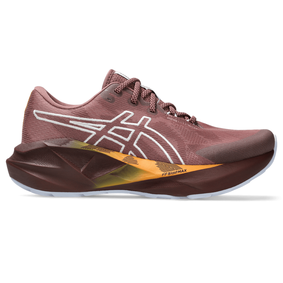 asics NOVABLAST 5 TR Damen – Dynamik und Bounce für jeden Trail Der asics NOVABLAST 5 TR ist die perfekte Wahl für Läuferinnen, die auf dem Trail maximale Energierückgabe mit leichtem, reaktivem Laufgefühl verbinden wollen. Mit einem Gewicht von nur 225 g ist er leichter und dynamischer als sein Vorgängermodell und begeistert mit spürbarem „Bounce“ bei jedem Schritt. Die FF BLAST MAX Foam Zwischensohle sorgt für ein besonders softes und gleichzeitig reaktives Lauferlebnis. Die vom Trampolin inspirierte Außensohle verstärkt die Rückfederung, während die spezielle Geometrie der Mittelsohle die Energierückführung optimiert. Dank trail-spezifischer Außensohle bietet der Schuh auch auf unebenen Untergründen zuverlässigen Grip und Stabilität. Das atmungsaktive Jacquard Mesh-Obermaterial, die verbesserte Passform durch das Wing-Fit-System und reflektierende Details machen den NOVABLAST 5 TR zu einem zuverlässigen Partner – egal ob bei schnellen Einheiten oder langen Ausdauerläufen. Zudem setzt asics auf nachhaltige Materialien, die den ökologischen Fußabdruck reduzieren. Highlights FF BLAST MAX Foam für leichte, reaktive Dämpfung Vom Trampolin inspiriertes Außensohlendesign für stärkere Rückfederung Mittelsohlengeometrie für optimale Energierückführung Trail-spezifische Außensohle für zuverlässigen Grip Engineered Jacquard Mesh für Atmungsaktivität Wing-Fit-System für stabilen Sitz der Zunge Reflektierende Details für bessere Sichtbarkeit Obermaterial zu mindestens 79 % aus recycelten Materialien Gewicht: 225 g Sprengung: 8 mm Mit dem NOVABLAST 5 TR hast du einen leichten, reaktionsfreudigen Trailschuh, der dich mit maximalem Komfort und Grip zu neuen Bestleistungen bringt.
