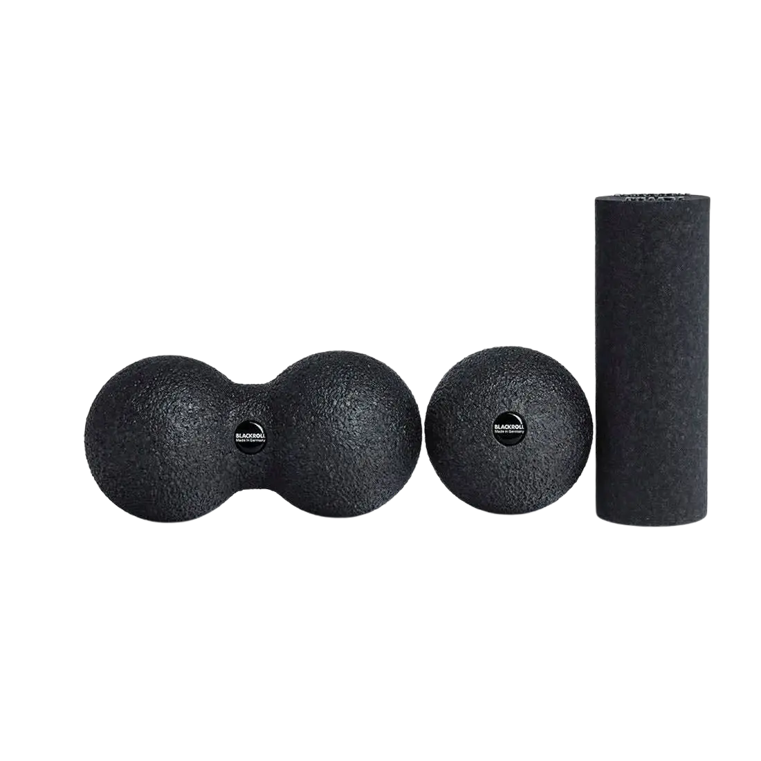 Das BLACKROLL® BLACKBOX MINI SET enthält einige der besten kleinen Massagetools in einem Paket! Hierzu gehören neben der BLACKROLL® MINI Faszienrolle und dem BLACKROLL® BALL 08 Faszienball, auch der DUOBALL 08 Faszienball, der sich für die Behandlung paralleler Muskelstränge ideal eignet. kleine Tools in einem BLACKROLL® SET für die punktuelle Faszienmassage geeignet ideal für unterwegs Made in Germany Kleine Massagetools in einem BLACKROLL® Set Das BLACKROLL® BLACKBOX MINI SET ist zwar klein, jedoch ist der Massageeffekt umso größer. In diesem Set stecken einige der kleinsten und wirksamsten Massagetools von BLACKROLL®, die sich für einen variablen Einsatz in den eigenen vier Wänden, im Fitnessstudio, auf Reisen oder im Büro eignen. Die handlichen Bestseller von BLACKROLL® sind nicht nur äußerst effektiv, sondern auch ausgesprochen klein, sodass sie in jede Tasche passen. Und das Beste ist: Du kannst sie jederzeit und überall anwenden, um Verspannungen zu lösen und die Beweglichkeit zu verbessern. BLACKROLL® MINI Faszienrolle: Der Klassiker im BLACKROLL® Set Die BLACKROLL® MINI Faszienrolle zählt zu den beliebtesten Massagetools, um besonders filigrane Muskeln zu massieren. Sie ist unglaublich handlich, weshalb du die BLACKROLL® MINI Faszienrolle ohne fremde Hilfe anwenden kannst. Ob für den Rücken, die Waden, die Achillessehnen oder die Arme: Mit dieser Rolle erreichst du jeden Muskel. Du kannst sie auf den Tisch oder den Boden legen, um die Arme und den Rücken zu lockern. Die Faszienmassage mit der BLACKROLL® MINI Faszienrolle funktioniert selbst an der Wand, indem du den Druck mit deinem Körpergewicht verstärkst oder verringerst. BLACKROLL® BALL 08 Faszienball für die punktuelle Selbstmassage Klein, handlich und äußerst wirksam – so lässt sich der BLACKROLL® BALL 08 Faszienball am besten beschreiben. Während sich die BLACKROLL® MINI Faszienrolle für eine flächige Selbstmassage eignet, findet der BLACKROLL® BALL 08 Faszienball vielmehr als punktuelles Massagetool Verwendung. Im Gegensatz zum BLACKROLL® BALL 12 Faszienball zeichnet sich dieser Ball durch eine besonders kleine Oberfläche aus. Die geringe Größe ist ideal, um lokale Verspannungen und Muskelverhärtungen optimal behandeln zu können. Insbesondere Hotspots, sogenannte Triggerpunkte, die besonders schmerzhaft sind. Diese Triggerpunkte sitzen meist im Gesäß, die durch eine einseitige Körperhaltung entstehen können. Unbehandelt können Muskelschmerzen schnell chronisch werden und sogar in die Beine ausstrahlen. Der BLACKROLL® BALL 08 Faszienball ist diesbezüglich ideal, wenn du einen wohldosierten Druck auf das verspannte Gewebe ausüben willst. Indem du das Faszientraining an der Wand, auf dem Tisch oder auf dem Boden durchführst, kannst du den Druck beliebig variieren. In Kombination mit der BLACKROLL® MINI Faszienrolle gelingt die Faszienmassage sowohl punktuell als auch flächig, um die Regeneration des verspannten Gewebes anzuregen und die Flexibilität der Muskulatur zu verbessern. Dabei steht die Qualität der Übungsausführung stets im Vordergrund der Behandlung, um das Gewebe nicht zu verletzen. Bei einer sorgfältigen Ausführung der Übungen, wirst du den positiven Effekt der Selbstmassage schnell spüren. Die Muskulatur wird nicht nur besser durchblutet – sie fühlt sich auch deutlich weicher und lockerer an. BLACKROLL® Set mit DUOBALL 08 Faszienball Ebenfalls in dem BLACKROLL® BLACKBOX MINI SET enthalten ist der DUOBALL 08 Faszienball, der zwei Faszienbälle vereint. Durch diese geschickte Kombination eignet sich der DUOBALL 08 Faszienball nicht nur für den Nacken – du kannst ihn auch für den gesamten Rücken, die Waden, Arme und die Achillessehnen verwenden. Im Gegensatz zum BLACKROLL® BALL 08 Faszienball findet der BLACKROLL® DUOBALL 08 Faszienball vor allem bei der Behandlung paralleler Muskelstränge Verwendung, weil die Dornfortsätze der Wirbelsäule ausgespart werden. Das Faszientraining ist mit dem BLACKROLL® DUOBALL 08 Faszienball nicht nur einfacher, sondern auch viel intensiver. Sobald du einen Triggerpunkt lokalisiert hast, kannst du den Druck auf das Gewebe verstärken, um Triggerpunkte gezielt zu behandeln. Und das Beste ist: Das BLACKROLL® Set eignet sich für alle, die sich mehr Leistung und Beweglichkeit im Alltag wünschen. Unsere BLACKROLL® BLACKBOX MINI ist hier ideal und ein weiterer Bestseller von BLACKROLL®. Probiere auch unsere weiteren BLACKROLL®-Produkte zur Mobilisierung und Regeneration von Muskulatur und Faszien sowie für den Einsatz im funktionel