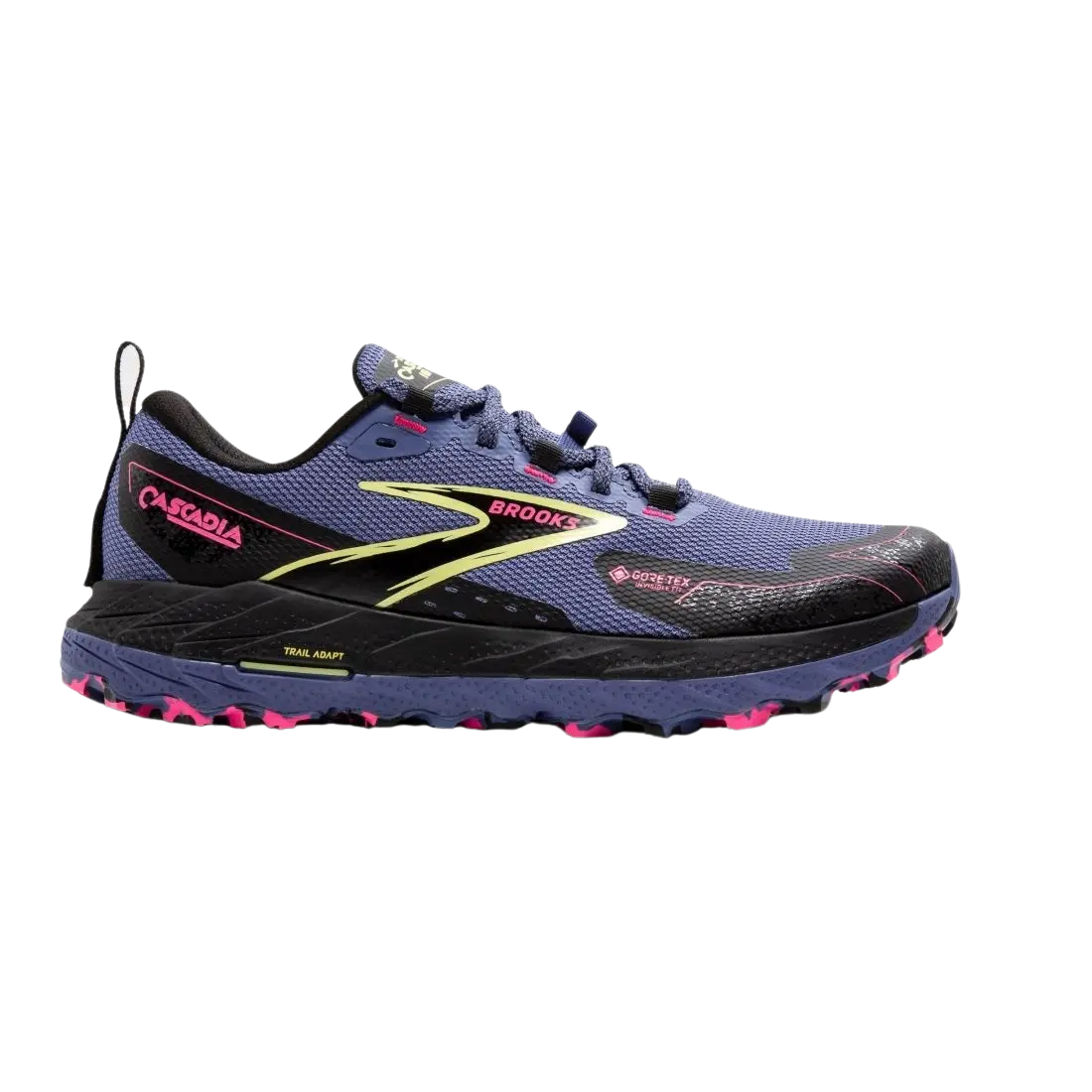 Tauche ein in die Wildnis mit dem Brooks CASCADIA 18 GTX – einem Trailrunningschuh, der für Stabilität und ultimativen Schutz auf den Trails entwickelt wurde. Das innovative Trail-Adapt System von Brooks kombiniert eine integrierte Zwischensohle, eine Felsplatte und zonale Außensohlen-Pods, um dir unübertroffene Kontrolle und ein stabiles Laufgefühl in jedem Gelände zu bieten. Die DNA LOFT v2 Dämpfung garantiert weiche Polsterung auf jedem Untergrund, während die TrailTack Green Außensohle aus recyceltem Material optimalen Halt auf nassem und trockenem Terrain bietet. Das robuste, atmungsaktive Mesh trocknet schnell und wird durch Overlays in beanspruchten Bereichen verstärkt, um ultimativen Schutz auf dem Trail zu gewährleisten. Mit dem Brooks Cascadia 18 GTX bist du bereit für jede Herausforderung in der Natur – ein Trailrunningschuh mit wasserdichter GORE-TEX® Technologie im Obermaterial, die einen leichten und flexiblen Sitz mit atmungsaktivem Schutz vor den Elementen bietet. Neuheiten des Cascadia 18 GTX Trailschuh für Damen: Um die CarbonNeutral®-Zertifizierung zu erlangen, setzen wir verstärkt auf recycelte Materialien, um den CO2-Ausstoß zu senken, und unterstützen gleichzeitig Projekte zur Kohlenstoffkompensation. Der Cascadia 18 GTX wird aus recycelten Materialien hergestellt, die das Äquivalent von 10 Plastikflaschen darstellen. Das aktualisierte Mesh-Design mit strategisch platzierten Overlays verbessert die Strapazierfähigkeit in kritischen Bereichen. Weitere Highlights: Das PriintDyed-Obermaterial spart erheblich Energie und Wasser im Vergleich zu herkömmlichen Färbeverfahren. Ein artikulierter Ballistic Rock Shield in der Zwischensohle schützt vor scharfen Steinen, ohne die Flexibilität zu beeinträchtigen. TPU-Mudguard und Zehenschutzkappe halten Schmutz und Ablagerungen fern. 4,5 mm tiefe Stollen bieten maximalen Grip auf anspruchsvollen Trailstrecken. Gewicht: 297g Sprengung: 8mm