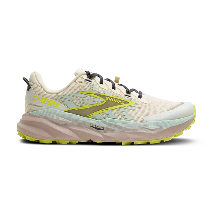 Brooks Cascadia 19 – Sicherer Halt auf jedem Trail Mit dem Brooks Cascadia 19 bist du für anspruchsvolle Trails bestens gerüstet. Das neue Trail Adapt System kombiniert eine flexible Außensohle mit einem integrierten Ballistic Rock Shield und sorgt so für adaptive Stabilität auf jedem Untergrund. Die stickstoffangereicherte DNA LOFT v3 Zwischensohle bietet dir reaktive Dämpfung – jetzt mit zusätzlichem Volumen im Vor- und Rückfußbereich für noch mehr Komfort. Die TrailTack Green Außensohle mit recyceltem Gummi liefert verlässlichen Grip bei Nässe, Schotter oder Matsch. Das atmungsaktive Sandwich-Mesh mit nahtlosen 3D-Overlays schützt deine Füße und bietet sicheren Halt, während Toe Cap und Mudguard zusätzlichen Schutz vor Steinen und Geröll bieten. Deine Vorteile im Überblick: Trail Adapt System mit integriertem Ballistic Rock Shield für flexible Stabilität Stickstoffangereicherte DNA LOFT v3 Zwischensohle für geschmeidige Dämpfung Umweltfreundliche TrailTack Green Außensohle mit sicherem Grip bei allen Bedingungen Atmungsaktives Mesh mit 3D-Overlays für angenehmen Halt Zehenkappe und durchgehender Mudguard für Rundumschutz im Gelände Technische Details: Gewicht: 266 g Sprengung: 6 mm Sohle: TrailTack Green Außensohle Zwischensohle: DNA LOFT v3 Schutz: Ballistic Rock Shield, Zehenkappe, Mudguard Ein vielseitiger Trailschuh, der dir auf jedem Untergrund die Kontrolle und Sicherheit gibt, die du brauchst.