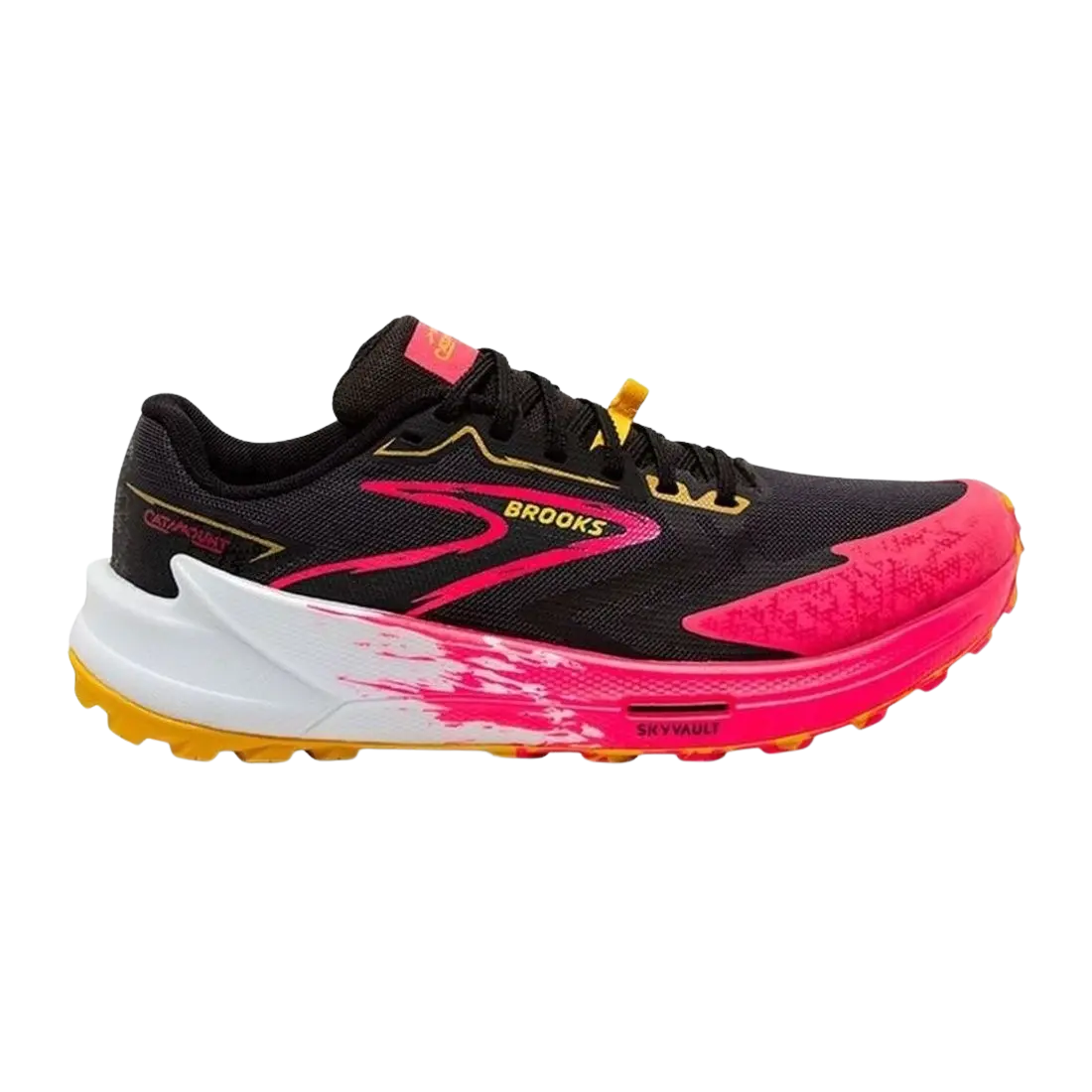 Der neue Brooks CATAMOUNT 3 Trailschuh ist ein hochleistungsfähiger Trailrunning-Schuh, der entwickelt wurde, um Läufern ein unvergleichliches Maß an Agilität, Schutz und Komfort zu bieten. Mit seinen fortschrittlichen Technologien und seinem leichten Design ist dieser Schuh ideal für anspruchsvolle Läufer, die technisches Terrain und abenteuerliche Trails meistern möchten. Er bietet die perfekte Kombination aus Reaktivität und adaptiver Dämpfung und ermöglicht dir ein hohes Lauftempo. Die Außensohle ermöglicht sowohl auf nassen als auch auf trockenen Untergründen eine überragende Traktion. Das Obermaterial ist leicht, atmungsaktiv und stromlinienförmig und passt sich so bei jeder Bewegung perfekt an den Fuß an Weitere Details zum Brooks CATAMOUNT 3 für Damen: Zwischensohle: DNA Flash Außensohle: Trail Track Green Rubber Obermaterial: TPEE Warp Knit Gewicht: 243g Sprengung: 6mm