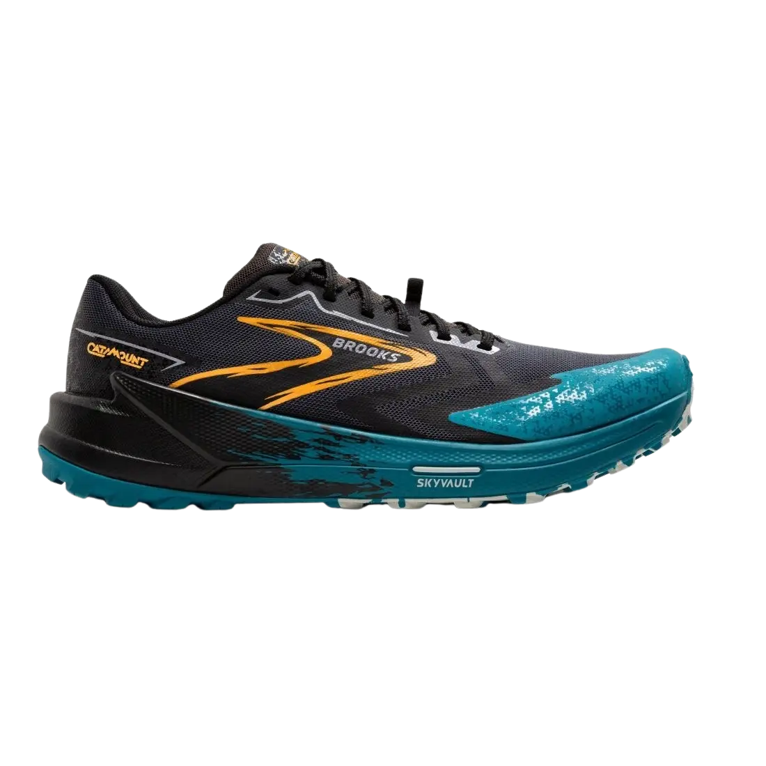 Brooks Catamount 3 Herren – Leicht, schnell und perfekt für lange Trail-Wettkämpfe Der Brooks Catamount 3 wurde speziell für Trail-Wettkämpfe zwischen 50 und 100 Kilometern entwickelt und kombiniert Leichtigkeit, Reaktivität und Traktion für ein dynamisches Lauferlebnis. Die antriebsstarke Dämpfung und die integrierte Propulsion Plate sorgen für effiziente Kraftübertragung – besonders bergauf –, damit du mit maximaler Geschwindigkeit über die Trails fliegen kannst. Dank des verbesserten Grips und der optimalen Traktion auf unebenem Terrain ist der Catamount 3 ein verlässlicher Begleiter für jedes Abenteuer. Das nachhaltige Obermaterial mit 41,2 % recycelten Materialien macht diesen Schuh nicht nur leistungsstark, sondern auch umweltbewusst. Produkteigenschaften: Leichte, reaktive Dämpfung : Unterstützt schnellen Vortrieb und minimiert Ermüdung. Propulsion Plate : Fördert eine effiziente Kraftübertragung und erleichtert das Bergauflaufen. Optimierter Grip : Sorgt für maximalen Halt auf technischem Terrain. Nachhaltigkeit : Hergestellt aus 41,2 % recycelten Materialien und zertifiziert als CarbonNeutral® Produkt. Sprengung : 6 mm, Gewicht : 266,5 g. Ob für schnelle Trails oder lange Wettkämpfe – der Brooks Catamount 3 Herren bietet die perfekte Mischung aus Geschwindigkeit, Dämpfung und Traktion für anspruchsvolle Strecken.