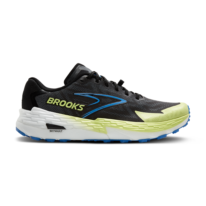 Brooks Catamount 4 – Trailschuhe Herren Schnelligkeit, Präzision und Grip – der Catamount 4 ist für alle Trailrunner gemacht, die bergauf genauso viel Leistung bringen wollen wie bergab. Die neu entwickelte SkyVault Trail Plate v2 unterstützt deine Abstoßphase beim Anstieg und ist vollständig in die reaktive DNA FLASH v2 Zwischensohle integriert. Für den nötigen Grip sorgt die TrailTack Green Außensohle mit 3,5 mm starken Stollen – ideal für matschige, felsige oder trockene Wege. Das widerstandsfähige Obermaterial aus TPEE-Mesh bleibt auch bei rauen Bedingungen atmungsaktiv und komfortabel. Technische Details: Sprengung: 6 mm Gewicht: 269 g Zwischensohle: DNA FLASH v2 (Stickstoff-infundiert) Platte: SkyVault Trail Plate v2 (vollflächig, gebogen) Außensohle: TrailTack Green Rubber mit 3,5 mm Stollen Obermaterial: Robustes, atmungsaktives TPEE-Mesh Fazit: Der Catamount 4 überzeugt mit perfektem Vortrieb und durchdachtem Trail-Support – ein zuverlässiger Begleiter für ambitionierte Läufe in anspruchsvollem Gelände.