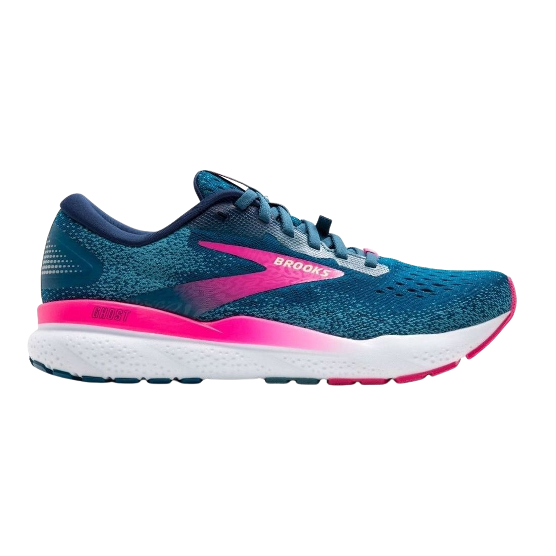 Der Brooks GHOST 16 GTX Damen Laufschuh – Ultimativer Schutz und Komfort für deine Läufe Der Ghost 16 GTX Laufschuh vereint innovative Technologie mit erstklassigem Komfort, um dir ein unvergleichliches Lauferlebnis zu bieten – bei jedem Wetter. Wasserdichte GORE-TEX®-Technologie Die integrierte GORE-TEX® Invisible Fit Technologie sorgt für einen leichten, flexiblen Sitz und bietet atmungsaktiven Schutz vor den Elementen. Diese nahtlose Verbindung zum Obermaterial hält deine Füße auch bei widrigen Bedingungen trocken, ohne dabei an Komfort einzubüßen. Aktualisierte Dämpfung Unsere weiche, stickstoffinfundierte DNA LOFT v3 Dämpfung bietet dir leichten Komfort und maximale Stoßabsorption. Egal, ob du lange Strecken läufst oder kurze Sprints machst – deine Füße werden es dir danken. Sanfte Übergänge Die weiche Zwischensohle und das Segmentierte Crash Pad fördern einen mühelosen Übergang von der Landung bis zum Abstoß. Das Ergebnis ist ein flüssiger und natürlicher Bewegungsablauf, der deine Laufeffizienz steigert. Zusätzliche Vorteile des Brooks GHOST 16 GTX Damen Laufschuh: Verfeinerter 3D Fit Print: Sorgt für eine sichere Passform und optimalen Halt. Nachhaltigkeit: Hergestellt aus recycelten Materialien, die dem Äquivalent von 10 Plastikflaschen entsprechen. Gewicht: 252g Sprengung: 12mm Farbe: Moroccan Blue/Pink/Yellow