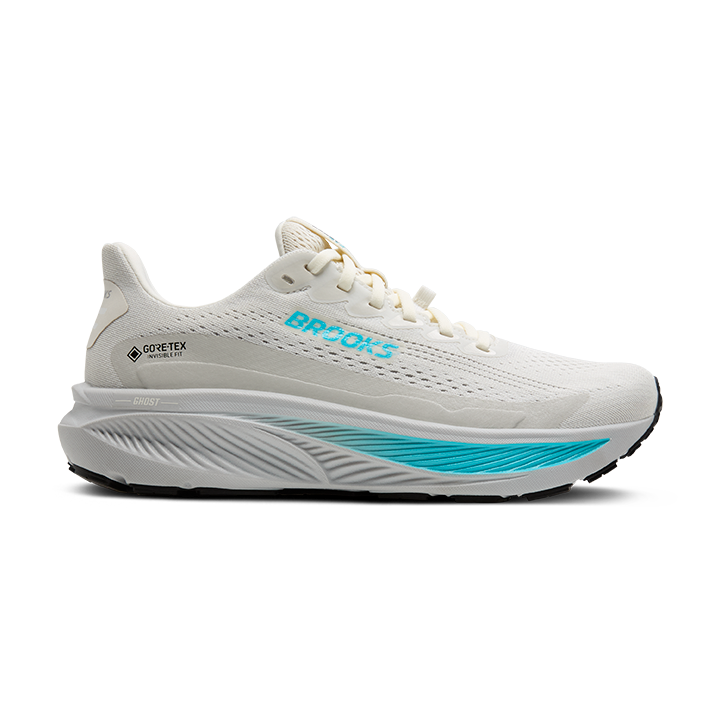 Brooks Ghost 17 GTX Damen – Komfort trifft Wetterschutz Der Brooks Ghost 17 GTX bietet dir das typische Ghost-Laufgefühl – jetzt mit wasserdichtem Schutz. Die GORE-TEX®-Membran hält deine Füße auch bei Regen angenehm trocken, während die Atmungsaktivität vollständig erhalten bleibt. Dank der leichten DNA LOFT v3 -Dämpfung genießt du ein weiches, geschmeidiges Abrollen – auf Asphalt ebenso wie auf festen Waldwegen. Die präzise Passform und das hochwertige Obermaterial sorgen für Komfort bei jedem Schritt, egal ob im Training oder bei langen Ausdauerläufen. Reflektierende Details erhöhen zudem deine Sichtbarkeit bei schlechten Lichtverhältnissen und sorgen so für zusätzliche Sicherheit. Technische Details DNA LOFT v3-Dämpfung für weiches Laufgefühl Wasserdichte, atmungsaktive GORE-TEX®-Membran Sprengung: 12 mm Gewicht: 255,1 g Neutrale Dämpfung, mittlere Stabilität Geeignet für Straße und feste Waldwege Normale Passform Mit dem Ghost 17 GTX bist du bestens gerüstet für Läufe bei jedem Wetter – bequem, dynamisch und zuverlässig.