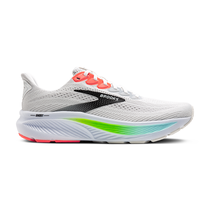Brooks Ghost 17 – Laufschuhe Herren Der Brooks Ghost 17 bietet dir ein perfekt abgestimmtes Laufgefühl aus Komfort, Reaktivität und Stabilität. Mit der neuen DNA LOFT v3 Zwischensohle genießt du ein besonders leichtes, weiches Dämpfungsverhalten, das dich auch bei langen Einheiten zuverlässig unterstützt. Der überarbeitete Schaft aus doppellagigem Jacquard-Mesh sorgt für eine optimale Passform und mehr Struktur – ganz ohne Druckstellen. Die neu designte Mittelsohle mit gezielten Flexkerben garantiert geschmeidige Übergänge und ein harmonisches Abrollen vom Aufsatz bis zum Abdruck. Ob täglicher Trainingslauf oder entspannter Longrun – der Ghost 17 überzeugt mit seiner Vielseitigkeit und einem ausgewogenen Laufgefühl. Technische Details: DNA LOFT v3: Stickstoff-infundierte Zwischensohle für besonders weiche Dämpfung Flexkerben für geschmeidige Übergänge Doppellagiges Jacquard-Mesh für atmungsaktiven Tragekomfort Sprengung: 10 mm Gewicht: 286 g CO2-neutral zertifiziert Fazit: Ein stabiler, reaktiver Neutralschuh für tägliche Läufe – komfortabel, zuverlässig und laufbereit vom ersten bis zum letzten Kilometer.