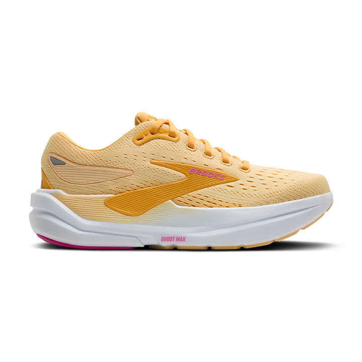 Brooks Ghost Max 3 – Damen Der Brooks Ghost Max 3 bietet dir ein geschmeidiges und schützendes Laufgefühl – perfekt für Läuferinnen, die maximale Dämpfung mit einer gelenkschonenden Abrollbewegung kombinieren möchten. Die großzügige DNA LOFT v3 Zwischensohle federt zuverlässig jeden Aufprall ab, während die GlideRoll™ Rocker-Technologie für müheloses Abrollen sorgt. Ein breiter Sohlenaufbau erhöht die Stabilität, ohne deinen natürlichen Laufstil zu beeinflussen. Das atmungsaktive Obermaterial aus Mesh und die orthopädie-freundliche Konstruktion machen den Ghost Max 3 zum optimalen Allrounder – auch für längere Distanzen oder sensible Füße. Technische Details: Sprengung: 6 mm Gewicht: 275 g DNA LOFT v3 Dämpfung GlideRoll™ Rocker für sanftes Abrollen Breite Plattform für mehr Stabilität Atmungsaktives Engineered Mesh Komfortable Passform – geeignet für orthopädische Einlagen Fazit: Ein komfortabler, maximal gedämpfter Laufschuh mit Fokus auf Stabilität und Schonung – ideal für lange Strecken und empfindliche Füße.