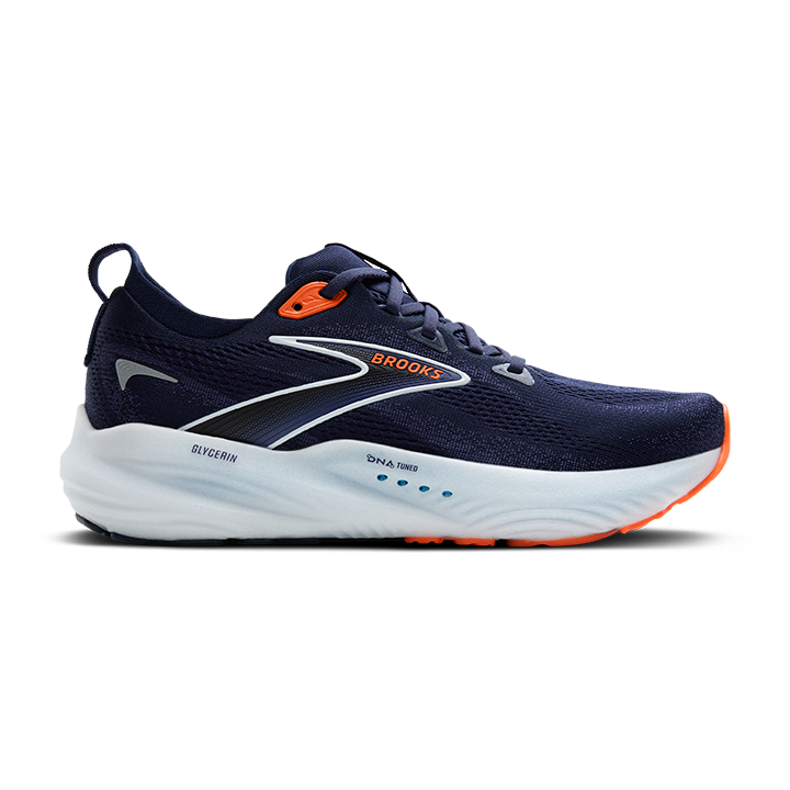 Brooks Glycerin 22 – Maximaler Komfort für Herren Der Brooks Glycerin 22 wurde für Läufer entwickelt, die bei jedem Lauf auf höchsten Komfort setzen. Mit der innovativen DNA Tuned-Technologie, die weiche Landungen in der Ferse und reaktive Zehenabdrücke im Vorfußbereich ermöglicht, bietet dieser Schuh eine perfekte Balance aus Dämpfung und Reaktivität. Das doppellagige Jacquard-Strick-Obermaterial sorgt für eine optimale Passform und hervorragende Atmungsaktivität, sodass du dich auf deine Leistung konzentrieren kannst. Die breite Plattform stabilisiert deinen Fuß bei jedem Schritt und sorgt für sanfte Übergänge, egal ob beim Training oder auf langen Strecken. Der Glycerin 22 ist dein idealer Partner für Komfort und Performance. Den Glycerin gibt es in zwei Weiten: D ist normale breite und 2E ist für Läufer, die breitere Füße haben. Produktdetails des Brooks Glycerin 22 Tuned Cushion: Nitroangereicherte DNA Tuned-Technologie mit dualer Zellstruktur für optimale Dämpfung und Energierückgabe. Anpassungsfähiges Obermaterial: Doppellagiges Jacquard-Strick-Obermaterial bietet Komfort und Flexibilität. Stabile Übergänge: Breite Plattform stabilisiert den Fuß und unterstützt geschmeidige Bewegungen von der Ferse bis zu den Zehen. Höchster Komfort: Für Läufer, die lange Distanzen mit maximaler Dämpfung bewältigen möchten. PDAC-zugelassen: Bietet medizinische Unterstützung mit herausnehmbarer Einlegesohle und verschiedenen Breitenoptionen. Sprengung: 10mm Gewicht: 289,2g Mit dem Brooks Glycerin 22 erlebst du ein Laufgefühl, das Komfort, Stabilität und Energie perfekt vereint.
