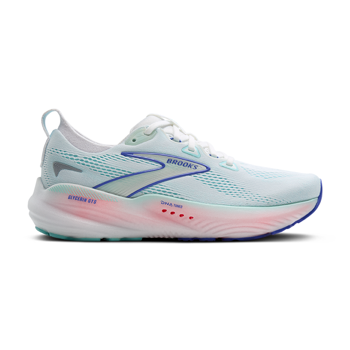 Brooks Glycerin GTS 22 – Unterstützung und Komfort für Läuferinnen Der Brooks Glycerin GTS 22 wurde für Läuferinnen entwickelt, die auf der Suche nach maximaler Dämpfung und stabiler Unterstützung sind. Mit der neuen DNA Tuned-Technologie erlebst du weiche Landungen und energiegeladene Zehenabdrücke dank der dualen Zellstruktur, die eine perfekte Balance zwischen Komfort und Reaktivität bietet. Das doppellagige Jacquard-Strick-Obermaterial sorgt für eine flexible Passform, die sich deinen Bewegungen anpasst. Das innovative GuideRails®-System unterstützt deinen Körper in seiner natürlichen Bewegung und hilft, übermäßige Belastungen zu reduzieren. Ob auf kurzen oder langen Strecken – der Glycerin GTS 22 begleitet dich mit Stabilität und Komfort, damit du dein Laufpotenzial voll ausschöpfen kannst. Produktdetails des Brooks Glycerin GTS 22: Tuned Cushion: DNA Tuned-Schaum mit dualer Zelltechnologie bietet weiche Landungen in der Ferse und reaktionsstarke Zehenabdrücke im Vorfuß. Flexible Passform: Neues doppellagiges Jacquard-Strick-Obermaterial für optimalen Sitz und Komfort. GuideRails® Support: Unterstützt deine natürliche Laufbewegung und hält überschüssige Bewegungen in Schach. Ideal für Läuferinnen: Perfekt für Stabilität und maximalen Komfort bei täglichen Läufen. PDAC-zugelassen: Geeignet für medizinische Anforderungen mit herausnehmbarer Einlegesohle und mehreren Breitenoptionen. Sprengung: 10mm Gewicht: 269g