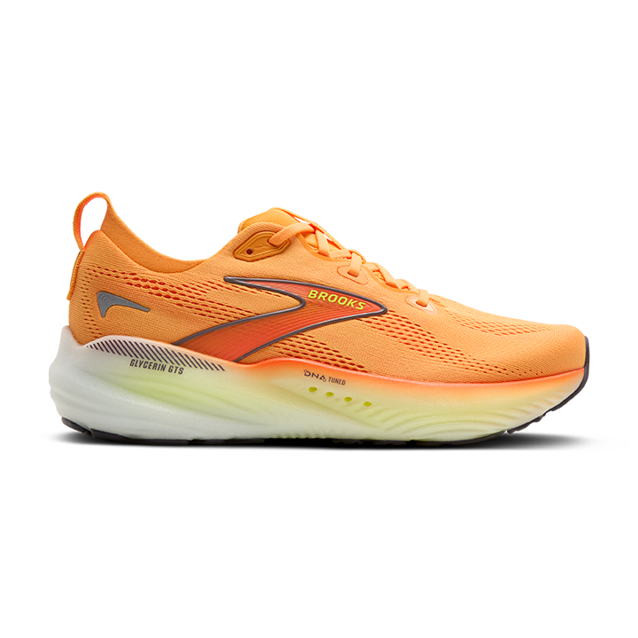Brooks Glycerin GTS 22 Herren – Weiche Dämpfung mit extra Stabilität Der Brooks Glycerin GTS 22 Herren kombiniert ultraweiche Dämpfung mit zuverlässiger Stabilität für ein besonders angenehmes Laufgefühl. Die mit Stickstoff angereicherte DNA Tuned-Dämpfung in der Zwischensohle sorgt für sanfte Landungen und ein reaktives Abdrücken , während das GuideRails™-Stützsystem übermäßige Bewegungen kontrolliert und deine natürliche Laufbewegung unterstützt. Das anpassungsfähige Obermaterial sorgt für eine optimale Passform, während die überarbeitete Sohlenkonstruktion geschmeidige und stabile Übergänge ermöglicht. Perfekt für Läufer, die weiche Dämpfung und zusätzlichen Halt für ein rundum komfortables Laufgefühl suchen. Produkteigenschaften: DNA Tuned-Dämpfung : Stickstoff-injizierte Zwischensohle für ultraweiche Landungen. GuideRails™-Stützsystem : Ganzheitliche Stabilität zur Unterstützung deiner natürlichen Laufbewegung. Anpassungsfähige Passform : Atmungsaktives Obermaterial für optimalen Tragekomfort. Geschmeidige, stabile Übergänge : Unterstützt eine natürliche Laufdynamik. Nachhaltigkeit : 61,3 % recycelte Materialien im Obermaterial. Gewicht: 303g Sprengung: 10mm Ob für tägliche Trainingseinheiten oder lange Strecken – der Brooks Glycerin GTS 22 Herren bietet dir maximale Dämpfung und Stabilität für einen sicheren und angenehmen Lauf.