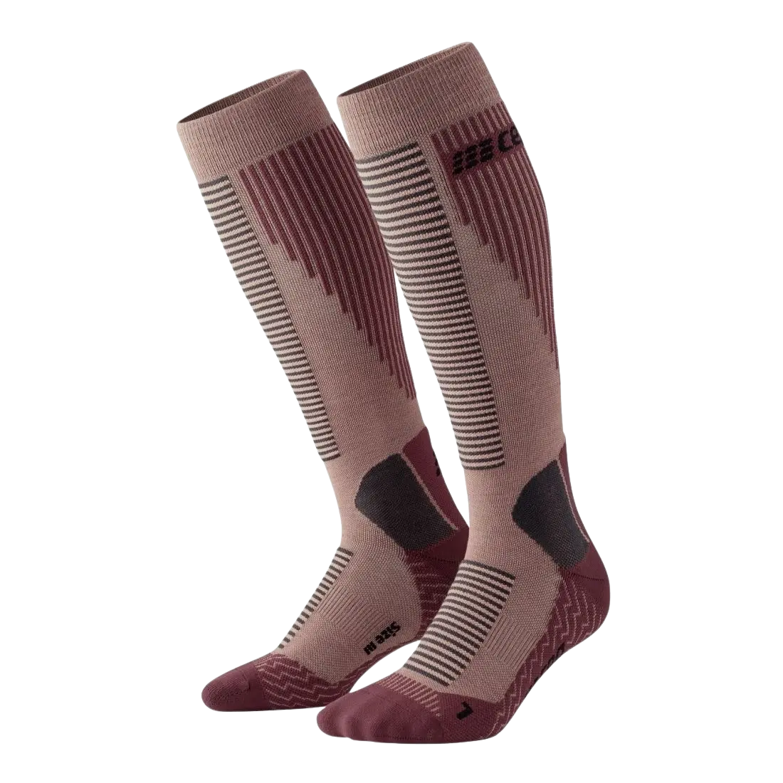 Cold Weather Socks für Damen: wärmender Komfort plus Kompression Sich auch bei niedrigen Temperaturen wohlfühlen und mehr leisten: Die Cold Weather Socks für Damen von CEP Sportswear machen es möglich – und zwar mit der innovativen Kombination von Merinowolle und Kompression. Der Anteil der edlen Naturfaser gewährleistet einen warmen und trockenen Tragekomfort, während die Kompression deine Muskulatur aktiviert. Das Ergebnis: Mehr Energie, die dir den entscheidenden Schub gibt, deine Ziele in der kalten Jahreszeit zu erreichen. Behagliches Wohlfühlklima an kalten Tagen dank Merinowolle Merinowolle ist ein ganz besonderes Material: Die feine Naturfaser verfügt über ein exzellentes Isolationsvermögen und die Fähigkeit, Feuchtigkeit schnell von der Haut wegzuleiten. Doch das Ganze ist noch steigerungsfähig – durch den Zusatz von hochwertiger Synthetik, die für hohe Stabilität und Elastizität sorgt. Das Resultat sind Kompressionssocken für Damen, die wie eine zweite Haut sitzen und dich mit einem trockenen und warmen Tragegefühl begeistern. Denn wer sagt, dass sich ambitioniertes Training und hoher Komfort ausschließen? Aktivierende Kompression für mehr Ausdauer und schnellere Regeneration Du willst mehr Ausdauer und eine schnellere Regeneration nach dem Training oder Wettkampf? Kein Problem – dank der medi Kompression der Cold Weather Socks für Damen. Der Clou liegt in der verbesserten Durchblutung, die wiederum den Abtransport von Abbauprodukten wie Laktat beschleunigt. Zugleich gelangen wertvolle Nährstoffe schneller in die Muskulatur. Den vorteilhaften Effekt spürst du unmittelbar in Form von leichteren Beinen und mehr Energie. Sicherer laufen dank stabilisierter Gelenke und besserer Eigenwahrnehmung Verletzungen, etwa durch Umknicken, plus anschließende Zwangspause sind der Albtraum jeder Läuferin. Dieses Risiko wird durch die Kompressionssocken für Damen wirkungsvoll verringert: Der leichte Druck des eng anliegenden Materials stabilisiert deine Gelenke tiefensensorisch. Außerdem erhöht sich deine Eigenwahrnehmung, die sogenannte Propriozeption. Du läufst geschmeidiger, souveräner und sicherer. Material: 76 % Polyamid, 13 % Wolle (Merino), 11 % Elasthan Farbe: rose Anleitung: 1. Wadenumfang messen (stärkste Stelle Wade) 2. Strumpf-Größe wählen: 25-31 cm / 9.5-12 inch, Größe II women 32-38 cm / 12.5-15 inch, Größe III women 39-44 cm / 15.5-17.5 inch, Größe IV women