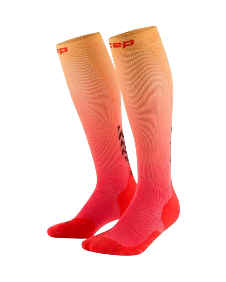 CEP Core Run Edition Gradient Tall Compression Socks – Herren Die CEP Core Run Edition Gradient Tall Compression Socks sind die perfekte Wahl für Läufer, die Leistung und Komfort auf höchstem Niveau suchen. Hergestellt in Deutschland mit modernster 3D-Kompressionstechnologie, bieten diese Socken eine präzise Unterstützung und Aktivierung deiner Muskeln und Gelenke. Sie fördern die Durchblutung und reduzieren Ermüdung – ideal für Training und Wettkampf. Vorteile der CEP Core Run Compression Socks für Herren: Leistungsunterstützend: Reduzieren Muskelvibrationen, sparen Energie und minimieren Muskelbeschwerden während des Trainings. Stabilisierung: Verbessert die Propriozeption, aktiviert tiefensensorisch Muskeln und Gelenke und senkt das Verletzungsrisiko. Perfekter Sitz: Faltenfreie Passform verhindert Verrutschen, Irritationen und Blasenbildung. Fördert die Durchblutung: Steigert die Sauerstoffversorgung der Muskeln und reduziert Schwellungen für anhaltende Frische. Weitere Highlights: Kühl und trocken: Mesh-Zonen und Luftkanäle für eine optimale Wärme- und Feuchtigkeitsregulierung. Komfortable Polsterung: Schützt empfindliche Bereiche und bietet zuverlässige Dämpfung. Feuchtigkeitsableitend: Schnelltrocknendes Material für mehr Komfort. Zehenbox für Herren: Speziell auf die männliche Fußform abgestimmt. Materialzusammensetzung: 48 % Polyamid, 36 % Polyester, 16 % Elasthan Ideal für Läufe bei milden Temperaturen – gemacht für maximale Leistung.