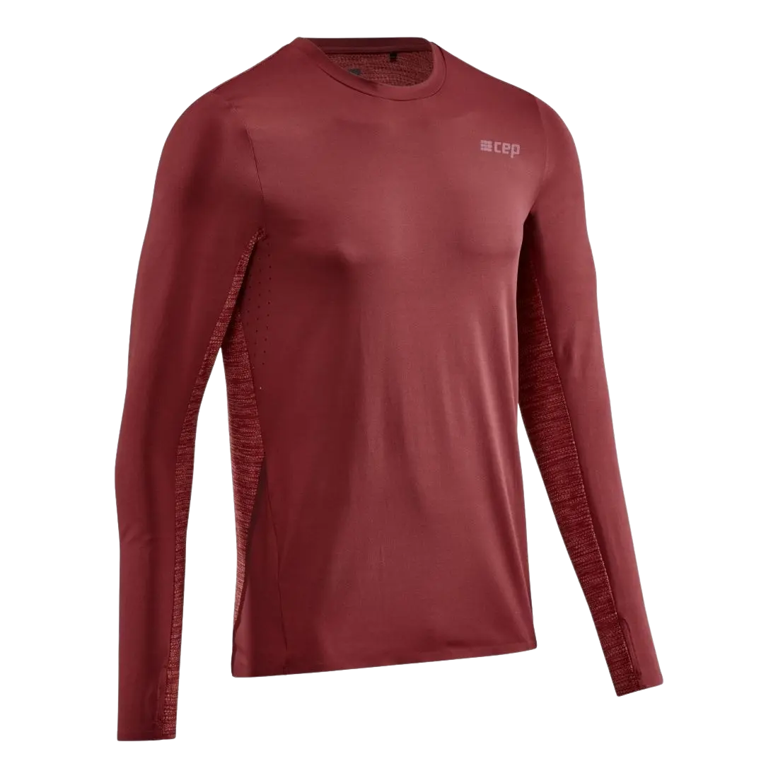 CEP Run Shirts Long Sleeve für Herren: hochfunktionell mit hohem Tragekomfort. Mit den neuen Laufshirts für Herren und ihren Top-Features startest du perfekt ausgestattet in dein Lauftraining. Speziell für die Anforderungen von Läufern und Ausdauersportlern konzipiert, überzeugt das Run Shirt Long Sleeve mit seinem durchdachten Mix aus atmungsaktiven Funktionsmaterialien, optimierter Passform und maximalem Komfort. Atmungsaktive Sportswear für Läufer und Ausdauersportler Souverän begleitet dich das Run Shirt Long Sleeve bei deinen Work-outs. Die Fasern leiten Feuchtigkeit vom Körper weg – so bleibst du auch bei anstrengenden Sprints angenehm trocken. Die Mesheinsätze am Rücken und im Armbereich unterstützen diesen Effekt, indem sie die Luft zirkulieren lassen. Laufshirt mit einzigartigem Tragegefühl Flache Nähte, optimale Passform und erstklassiges Hightech-Material: Das Run Shirt mit den langen Ärmeln bringt alle Features mit, die du während des Trainings für deine Performance und dein Wohlbefinden brauchst. Perfekt für Ausdauersport und Running im Freien sowie im Studio! Sicher unterwegs dank reflektierenden Tapes Sowohl vorne als auch hinten auf dem Laufshirt befinden sich reflektierende Tapes. Sie sind strategisch und optisch ansprechend platziert. Mit dem Run Shirt Long Sleeve für Herren bist du besser sichtbar und somit sicherer unterwegs. Hol dir das hochfunktionelle Run Shirt Long Sleeve für Herren von CEP Sportswear und genieße das Plus an Leistung und Komfort bei jedem Lauf! Geeignet für: Ausdauersportler, Läufer Material: Hauptmaterial: 88 % Polyester, 12 % Elasthan, Mesh-Einsatz: 100 % Polyester Farbe: dark red