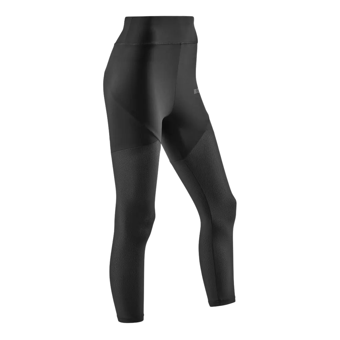 Aktivieren durch Klimamanagement: die CEP Ultralight 7/8 Tights für Frauen. Optimaler Support auch an heißen Tagen: Mit der Ultralight 7/8 Tights für Frauen von CEP Activating Sportswear bist du perfekt für Sommerläufe gewappnet. Die innovativen Materialien der Frauen-Laufhose regulieren dein Körperklima dank Belüftungstechnologien jederzeit angenehm. Ihre anatomische Passform verleiht der atmungsaktiven Tight einen rutschfesten, komfortablen Sitz. Das mittellange Design und der smarte Materialmix ergänzen ihn formvollendet. Perfekter Sitz durch anatomische Passform und SMART STRETCH Dank SMART STRETCH schmiegt sich die ultraleichte 7/8-Tight für Frauen angenehm an deine Haut. Ihr komfortabler, festsitzender Bund trägt ebenfalls zu ihrem verlässlichen Sitz bei, sodass lästiges Verrutschen kein Thema ist. Skin-tight-Fit sorgt für wohltuenden Tragekomfort und du konzentrierst dich voll und ganz auf dein Training. Smartes Cooling für höhere Leistungsfähigkeit Die Ultralight 7/8 Tights stellt die dünnste und leichteste Laufhose der CEP Activating Sportswear-Kollektion dar. Ihre Synergie aus hochtechnischen Fasern, Meshelementen und SMART COOLING lässt die Luft zirkulieren und schützt dich vor Überhitzung. Das ultraleichte Material leitet Feuchtigkeit und Wärme zügig nach außen ab – du bleibst auch bei schnellen und langen Sommerläufen angenehm temperiert. Durchdachte Ausstattung und Stabilisierung Mit der TIGHTFIT-Ausrüstung finden der innovative Materialmix und die anatomische Passform die ideale Ergänzung. Diese Kombination bewirkt, dass die Ultralight 7/8 Tights für Frauen Gelenke und Muskeln stabilisiert sowie aktiviert. Sie minimiert kraftraubende Muskelvibrationen und lässt dich voller Energie durchstarten. Kleinigkeiten wie Schlüssel verstaust du in den cleveren Taschenlösungen. Mit ihrer Verbindung aus Atmungsaktivität, Kühlung und Stabilisierung setzt diese 7/8-Tight aus der Ultralight-Kollektion neue Maßstäbe für Leistungsfähigkeit und Komfort. Bestell die mittellange Laufhose für Frauen von CEP Activating Sportswear online. Material: Hauptmaterial: 76 % Polyamid, 24 % Elasthan Mesh-material: 88 % Polyester, 12 % Elasthan
