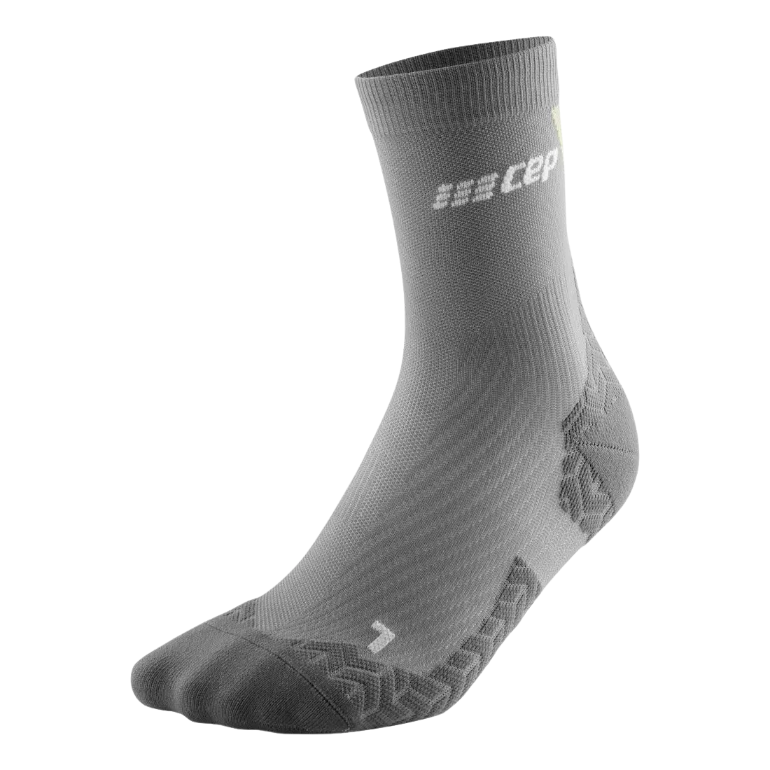 Die CEP Ultralight Compression Mid Cut V3 Socken für Herren sind die perfekte Wahl für heiße Sommertage: Hervorragender Tragekomfort trifft auf innovative Technologien. Mit der stabilisierenden und aktivierenden medi compression erreichst du leichtfüßig neue persönliche Bestleistungen. Gleichzeitig sorgt das dünne, atmungsaktive Material für ein angenehmes Tragegefühl. medi compression für mehr Leistung und weniger Verletzungsrisiko Mit den leichten Damensocken schöpfst du dein Potenzial voll aus. Die medi compression wirkt sich positiv auf deine Leistung und Ausdauer beim Biken, Laufen oder in anderen Disziplinen aus. Sie reduziert Muskelvibrationen und hilft dir, deine Kraft optimal zu entfalten. Zusätzlich stabilisiert die Kompression den Fuß- und Knöchelbereich und verringert das Verletzungsrisiko. Hervorragende Passform und fester Sitz verhindern Scheuern und Blasenbildung. Unfreiwillige Trainingspausen wegen Blasen? Nicht mit den Ultralight Compression Short Socks für Damen! Die enge Passform und die durchdachte, ultraleichte Materialmischung sorgen für einen festen Sitz am Fuß und reduzieren effektiv die Reibung. Und weniger Reibung bedeutet weniger Blasenbildung als bei herkömmlichen Socken. Hoher Tragekomfort dank optimierter Polsterzonen Darüber hinaus verfügen diese kurzen Kompressionsstrümpfe für Damen über anatomisch optimal platzierte Polsterzonen. Diese haben einen doppelten Effekt: Zum einen genießt du eine angenehme Dämpfung. Zum anderen verbessert die Polsterung die Verbindung zwischen Fuß und Schuh und damit die Kraftübertragung. Fühle dich wohl bei sommerlichen Temperaturen – und starte durch mit den komfortablen Ultralight Compression Mid Cut V3 Socken für Herren! Material: 85 % Polyamid, 15 % Elasthan Farbe: grey lime
