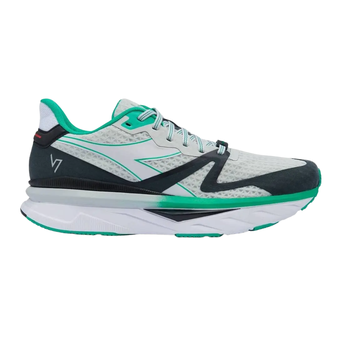 Nach mehr als 40 Jahren steht der Laufsport wieder ganz im Zeichen italienischer Qualität und Kompetenz. Technologische Innovation, handwerkliches Können und kreatives Design verschmelzen zu einem Schuh, der dazu bestimmt ist, Kultstatus zu erreichen. Der Atomo V7000 zeichnet sich durch optimale Dämpfung und Komfort aus – die herausragende Eigenschaften aller Diadora Running-Produkte – und ist zudem erstaunlich leicht und reaktionsfreudig, was durch den Einsatz einer neuen Technologie gewährleistet wird: der speziellen “dd-anima”-Mischung. Die neue dd anima Technologie zeichnet sich neben der hohen Dämpfung durch extreme Leichtigkeit und Reaktivität aus. Kombiniert mit der Wirkung des Federpebax-Schaftes sorgt sie für Vortrieb und Energieeinsparung und erleichtert den Übergang des Fußes von der Aufprallphase zur Schubphase für einen reibungslosen und schnellen Lauf. Gewicht: 260g Sprengung: 5mm