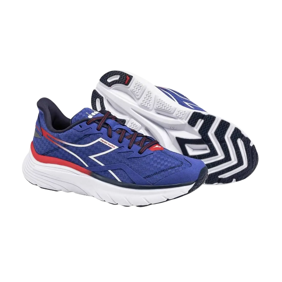 Diadora Equipe Nucleo ist die jüngste Neuheit für das Running, die für Athleten entwickelt wurde, die in der Stadt laufen und sie als Playground für das Training und die kommenden Herausforderungen nutzen. „Nucleo“ als Hommage an das hauptsächliche Feature, die Zwischensohle, der wahre Kern dieses Schuhs, der sich durch Reaktivität und Leichtigkeit auszeichnet. Die Zwischensohle des Equipe Nucleo ist so konzipiert, dass sie beste Performance garantiert, ohne dabei die Stabilität und den Schutz des Fußes zu vernachlässigen. Gefertigt mit unserer DD-Anima-Technologie aus High Rebound Compound, garantiert sie tatsächlich eine herausragende Dämpfung. Dieses besondere Gemisch erhöht die Reaktivität der Zwischensohle um 30 % und reduziert gleichzeitig das Gewicht um 20 %. Die Sohle besteht aus abriebfestem Gummi, eine Garantie für Langlebigkeit, mit dem speziellen verschleißfesten Gemisch Duratech 5000 im Fersenbereich. Highlights des Diadora EQUIPE NUCLEO: Low Drop Lightweight Gewicht: 275 g (Größe 9 UK) Drop: 5 mm Nylon-Air-Mesh und Mikrofaser DNATTIVO – herausnehmbare Innensohle DD Anima Spezielle Duratech 5000 verschleißfeste Mischung im gesamten Fußbereich.
