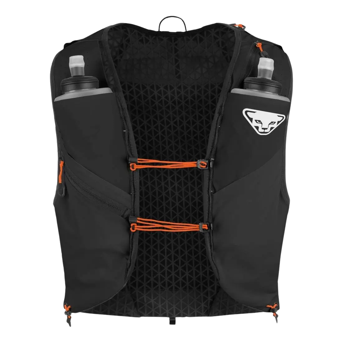 Die Dynafit Alpine 8 Vest ist eine vielseitige Laufweste für kurze und mittlere Distanzen. Komfortabel, vielseitig und unverzichtbarer Partner für Trailläufe aller Art. Die Alpine 8 Laufweste überzeugt durch ein funktionales Taschen-Setup für Verpflegung und Equipment sowie durch die individuell versetzbare Stockbefestigung. Alles dabei beim Trail Running: Die Alpine 8 Unisex Laufweste überzeugt als Allrounder mit durchdachtem Design und perfektem Sitz auf kurzen und mittleren Distanzen. Die leichte, komfortable und vielseitige Alpine 8 Laufweste ist Dein perfekter Running-Buddy für jeden Trail Run. Sie sitzt wie eine zweite Haut und bietet Dir jede Menge Platz für Dein Equipment sowie eine clevere Fächeraufteilung, um spielend leicht Ordnung zu halten. Das Hauptfach am Rücken ist unterteilt in zwei überlappende Fächer. Das Fach nahe am Rücken ist zugänglich über den Reißverschluss oben am Nacken sowie einen Reißverschluss unten. Das zweite Fach verfügt unten ebenfalls über einen Reißverschluss. So ist die Weste einfach zu packen und Deine Sachen sind auch während des Laufens mit nur einem Handgriff erreichbar. Außerdem besitzt die Alpine 8 vorne, auf der Seite und hinten weitere Stretchtaschen zum Verstauen von Kleinigkeiten sowie eine abnehmbare wasserdichte Tasche für Smartphone und Co., die Du flexibel in der Laufweste verstauen kannst, wenn Du sie nicht benötigst. Besonderes Augenmerk haben die Entwickler auf die Passform gelegt, denn nichts ist beim Laufen störender als eine Laufweste, die auf und ab hüpft. Durch das 3D Mesh überzeugt die Weste mit einem komfortablen Sitz auch nach vielen Kilometern auf der Uhr. Die Passform der Weste kannst Du außerdem über die doppelten elastischen Verschlüsse und die seitliche Regulation perfekt an Deine Größe und Körperform anpassen. Ein weiteres Highlight der Alpine 8 Laufweste ist die Stockfixierung. Hier stehen gleich drei verschiedene Befestigungsmöglichkeiten bereit: vorne vertikal, hinten vertikal oder hinten horizontal als „V“ – ganz so wie Du es am liebsten magst. Im Lieferumfang bereits enthalten sind außerdem zwei 500 ml Softflasks mit breiter Öffnung für schnelles Befüllen. Natürlich kannst Du die Laufweste aber auch mit einer Trinkblase nutzen. Die Dynafit Alpine 8 Laufweste auf einen Blick: Inklusive zwei 500 ml Soft Flasks Stretch-Taschen Repositionierbare Stockfixierung Seitliche verstellbar Abnehmbare wasserdichte Tasche Reflektierende Details Höhenverstellbarer Brustgurt Sicherheitspfeife Leicht zugängliche Taschen Gewicht: 235g Volumen: 8 L Farbe: Black Out