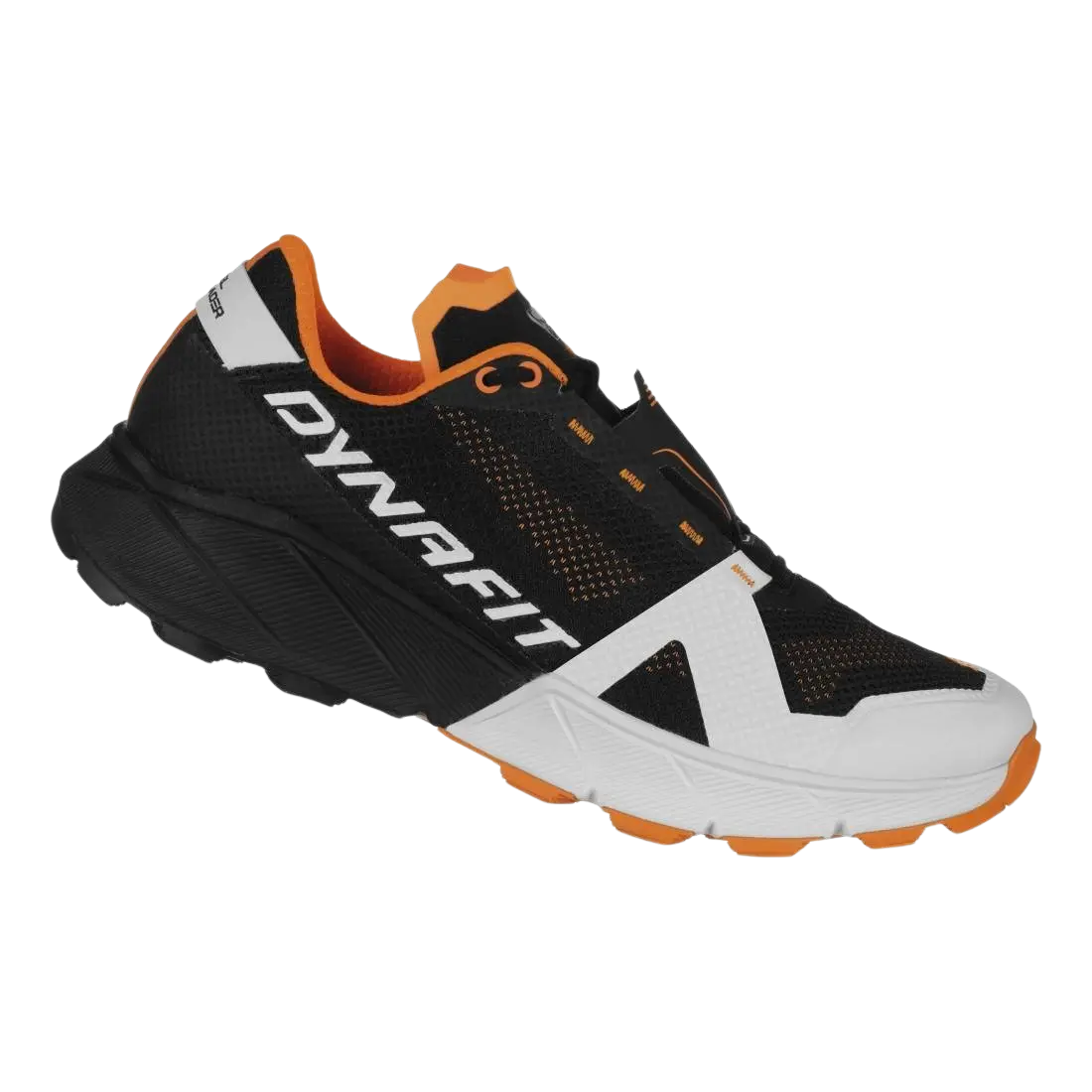 Der DYNAFIT ULTRA 100 meistert den Spagat zwischen maximaler Dämpfung, Traktion und ausgezeichneter Energierückgabe. Mit seiner bequemen Passform ist er der perfekte Laufschuh für Ultra-Distanzen in jedem Gelände. Trotz seines maximalen Volumens und der hohen Standhöhe von mehr als 30 mm überzeugt der Ultra 100 als spritziger Begleiter mit exzellentem Grip und Präzision vom ersten bis zum letzten Kilometer. Der Drop von 6 mm entspricht dabei den Präferenzen ambitionierter Ultra Runner. Bei der Sohle setzen die Entwickler auf die Vibram® Megagrip Mischung, die im Wettkampfsport als Maß der Dinge für höchste Performance gilt. Beim Ultra 100 kommen erstmals die neuen Vibram Traction Lugs zum Einsatz. Dieses innovative Stollenkonzept mit 4 mm Stollenhöhe garantiert verbesserte Traktion und perfekten Grip, damit Du auf jedem Untergrund sicher und präzise unterwegs sind. Weitere wichtige Details zum Dynafit Ultra 100 für Herren: Die Zwischensohle ist angenehm gedämpft für ein federndes Laufgefühl, aber gleichzeitig sehr leicht und reaktiv. Das neuartige Material wiegt 20 Prozent weniger als eine herkömmliche EVA-Zwischensohle, gibt dabei aber mehr als 10 Prozent Energie zurück. Die anatomische Fersenkonstruktion sorgt zusammen mit dem Heel Preloader für einen festen und sicheren Halt und ermöglicht Dir optimale Kontrolle sowie Stabilität. Gleichzeitig wird die beanspruchte Achillessehne entlastet. Der Rocker-Shape der Sohle garantiert ein dynamisches und flüssiges Abrollverhalten, das auch auf den letzten Kilometer mit schweren Beinen ein flowiges Laufgefühl verspricht. Der Ultra 100 kommt mit einer klassischen Schnürung, die optimal an Deine individuellen Bedürfnisse angepasst werden kann. Die nahtlose Zungenkonstruktion verhindert Druckstellen und die Schnürsenkel verstaust Du sicher in der elastischen Abdeckung. Gewicht: 309g Sprengung: 6mm Farbe: Black Out/Nimbus