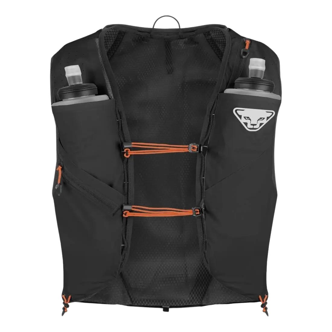 Die Dynafit Ultra 12 Vest ist eine leichte, funktionale Laufweste für lange Tage auf den Trails. Alles griffbereit: Leichte, performanceorientierte Laufweste mit durchdachter Taschenanordnung für schnelle und einfache Verpflegung bei Ultraläufen, ohne die Weste ausziehen zu müssen. Alles dabei auf den Trails: Die Ultra 12 Unisex Laufweste wurde für ambitionierte Ultraläufer:innen entwickelt und überzeugt mit durchdachtem Design und perfektem Sitz. Die 190 g leichte und performanceorientierte Ultra 12 Laufweste sitzt wie eine zweite Haut und bietet schnellen und einfachen Zugriff auf Ausrüstung und Verpflegung, ohne die Weste dafür ausziehen zu müssen. Sie ist in insgesamt 12 Fächer unterteilt, die alle während des Laufens zugänglich sind und viel Platz bieten. So kannst Du perfekt Ordnung halten und hast immer alles zur Hand, was Du brauchst. Zusätzlich verfügt die Ultra 12 über eine abnehmbare, wasserdichte Tasche für Smartphone und Co, die Du flexibel in der Laufweste verstauen kannst. Besonderes Augenmerk haben die Entwickler auf die Passform gelegt, denn nichts stört beim Laufen mehr als eine Laufweste, die auf und ab hüpft. Ein unelastisches Mesh bildet daher die Basis der Ultra 12 und garantiert auch bei rasanten Downhills perfekten Sitz. Ist man mit weniger Ausrüstung unterwegs, lässt sich das Rückenfach mit zwei Haken komprimieren, so dass alles kompakt und nah am Rücken sitzt. Die Passform der Weste lässt sich zudem durch die doppelten elastischen Verschlüsse und die seitliche Verstellbarkeit perfekt an deine Größe und Körperform anpassen. Ein weiteres Highlight der Ultra 12 Laufweste ist die Stockbefestigung. Hier stehen Dir gleich drei verschiedene Befestigungsmöglichkeiten zur Verfügung: vorne vertikal, hinten vertikal oder hinten horizontal als „V“ – ganz wie es Dir am liebsten ist. Ebenfalls im Lieferumfang enthalten sind zwei 500 ml Softflaschen mit großer Öffnung zum schnellen Befüllen. Die Dynafit Ultra 12 Laufweste auf einen Blick: Inklusive zwei 500 ml Soft Flasks Stretch-Taschen Repositionierbare Stockfixierung Seitliche verstellbar Abnehmbare wasserdichte Tasche Reflektierende Details Höhenverstellbarer Brustgurt Sicherheitspfeife Kompression Leicht zugängliche Taschen Gewicht: 190g Volumen: 12 L Farbe: Black Out