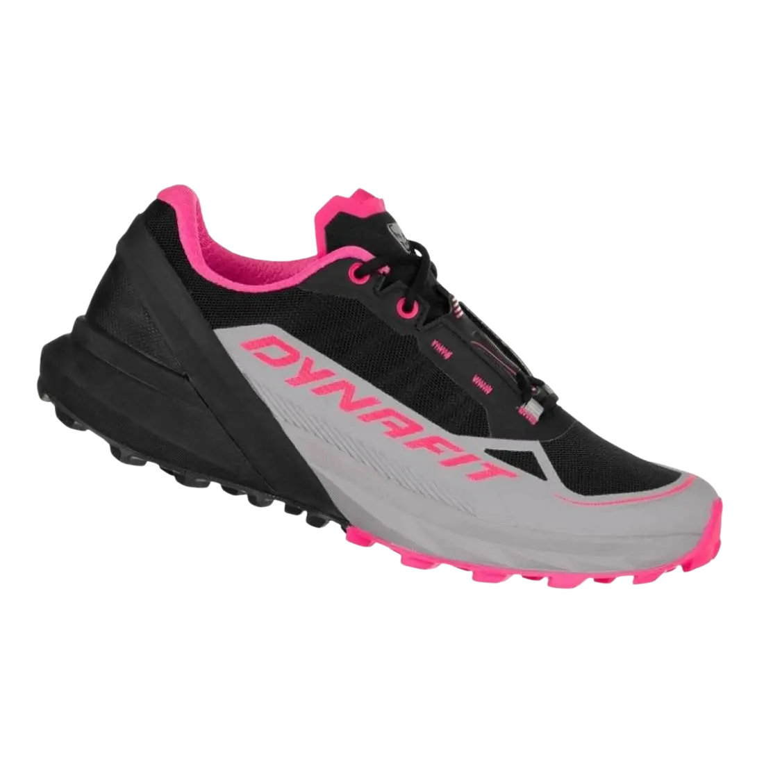 Dynafit Ultra 50 Laufschuh Damen – Schutz und Dämpfung für lange Trail Läufe in alpinem Gelände. Der Dynafit Ultra 50 W ist ein Trail Running Schuh mit einer bequemen Passform und etwas mehr Dämpfung, die für den nötigen Schutz bei langen Läufen im alpinen Gelände sorgt. Der komfortable Dynafit Ultra 50 Laufschuh für Damen wurde für lange Trailläufe entwickelt. In technischem Gelände ist er ebenso zuhause wie auf weichem Untergrund. Laufen ohne Limit – egal wo, egal wie lange! Auf anspruchsvollen, alpinen Trails benötigen Deine Füße einen Schuh, der rundum perfekt schützt und sicheren Grip bietet, dabei aber nicht unnötig beschwert. Für Distanzen von 40 km und mehr sind gute Dämpfung und eine bequeme Passform gefragt, um die Leistungsfähigkeit bis zur Ziellinie zu garantieren. Der Ultra 50 ist der perfekte Begleiter, um Deine Grenzen neu zu definieren und in jedem Gelände das Beste aus Dir herauszuholen – vom ersten bis zum letzten Kilometer. Der leichte Trail Running-Schuh besitzt eine hervorragende Dämpfung und einen bequemen Fit für hohen Komfort bei langen Läufen. Die POMOCA-Außensohle des Ultra 50 zeichnet sich durch ihr offenes, aggressives Profil aus und bietet optimalen Grip und Reaktionsfähigkeit sowohl auf trockenem Untergrund als auch bei widrigen Bedingungen. Mit einem Drop von 8 mm und der Alpine Rocker-Formgebung der Außensohle ermöglicht der Ultra 50 einen dynamischen Laufstil auch in technischem Gelände. Die 3D-Mesh-Konstruktion und eine nahtlose Zunge sorgen dafür, dass der Schuh nicht drückt. Das maximale Schuhvolumen garantiert eine optimale Blutzirkulation und wirkt so dem Ermüden und Anschwellen der Füße entgegen. Verstärkungen im Zehenbereich und der an sensiblen Stellen aufgetragene TPU Film schützen den Fuß in felsigem Gelände vor Stoßeinwirkungen. Über die klassische Schnürung kann der Ultra 50 optimal an die jeweilige Fußform angepasst werden für sicheren Halt. Die Schnürsenkel werden während des Laufens in der elastischen Abdeckung verstaut, um nicht zur Stolperfalle zu werden. Für zusätzlichen Halt im Fersenbereich sorgt der bewährte DYNAFIT Heel Preloader. Dynafit Ultra 50 – Dein Schuh für grenzenlos lange Läufe: Größe 3-9 UK Gewicht 250 g Specifications Drop 8mm Fit Maximum Volume Farbe: Alloy Black Out