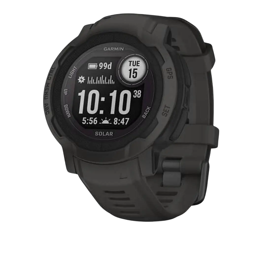 Genau dein Life. Genau dein Style. Diese Garmin INSTINCT 2 SOLAR Graphite stürzt sich mit dir in jedes Erlebnis – und zeigt dabei endlos Ausdauer: Dank neuester Solartechnik musst du sie im Smartwatch-Modus nicht mehr aufladen1. Jetzt sogar in zwei Größen, und somit auch für schmale Handgelenke geeignet. ENTWICKELT FÜR DRAUSSEN Diese robuste Smartwatch ist wasserdicht bis 10 ATM (entspricht dem Prüfdruck in 100 m Wassertiefe) und ist außerdem thermisch beständig und stoßfest. Dazu kommt ein Gehäuse aus faserverstärktem Polymer. Das Display wurde chemisch verstärkt und ist aus kratzfestem Gorilla® Glass. GENAU DEIN STYLE Mit kräftigen Farben, kontrastreichen Displays und Modellen in verschiedenen Größen kannst du der Welt zeigen, dass du deine eigenen Wege gehst. Unendlich Power Nie mehr laden im Smartwatch-Modus. Dank neuester Solartechnik hält der Akku unbegrenzt1 im Smartwatch-Modus. Mit dem Power Manager kannst du die Akkulaufzeit weiter verlängern. MULTI-SATELLITEN-UNTERSTÜTZUNG Nutze mehrere globale Navigationssatellitensysteme (GPS, GLONASS und Galileo), um in schwierigeren Umgebungen eine bessere Positionsfindung als bei ausschließlicher Verwendung von GPS zu erhalten. ABC-SENSOREN Navigiere auf dem nächsten Trail mit ABC-Sensoren, darunter ein Höhenmesser für Höhendaten, ein Barometer zum Überwachen des Wetters und ein elektronischer 3-Achsen-Kompass. TRACBACK™ ROUTING Überlasse auf deinem Rückweg nichts dem Zufall, sondern navigiere mit dieser Funktion auf derselben Route zurück zum Startpunkt. So gehst du niemals verloren. Lieferumfang: Instinct® 2 Solar Schiefergrau mit Silikon-Wechselarmband 22 mm USB Lade-/Sync-Kabel Dokumentation
