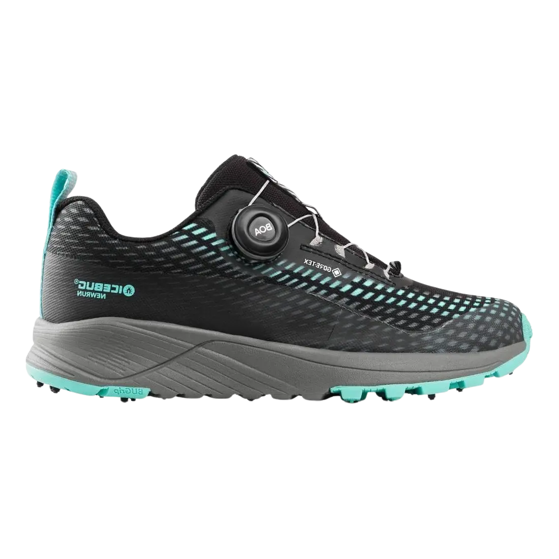NewRun ist der erste echte Straßenlaufschuh von ICEBUG. Gemacht für diejenigen, die das ganze Jahr hart trainieren und Kilometer sammeln möchten. Denn warum die Trainings-Routine ändern – oder komplett unterbrechen – nur, weil Schnee und Eis auch die Straßen erreicht haben. Der Fokus bei der EntWicklung lag auf Komfort: Damit bei kalten Temperaturen Raum zur Bewegung bleibt, ist der Leisten des NewRun so geformt, dass der Fuß in einer geräumigen Zehenbox und geraden Zehenlinie steht. So kann sich eine isolierende Warmluftschicht zwischen Schuh und Fuß bilden. Die gut gedämpfte Sohle bietet dem Läuferfuß Komfort und Stabilität zugleich – auch auf langen Strecken. Gekrönt wird der Schuh durch das wasserdichte GORE-TEX® Obermaterial und das praktische BOA® Fit System Schnürsystem. Praktisches Feature für den Winter: Im Obermaterial sind Ösen integriert, in denen sich bei Bedarf Gamaschen befestigen lassen. Ob BUGrip® Außensohle mit unseren patentierten, dynamischen Spikes oder rutschfeste RB9 Gummimischung – im NewRun fühlt sich das Laufen auf winterlichem Untergrund an wie ein lässiger Spaziergang im Park. Wofür: Für Herbst und Winter auf Asphalt, Schotterpiste und im Stadtpark. Warum wir ihn gemacht haben: Wir wollten einen komfortablen Laufschuh für winterliche Straßen entwickeln, der auch bei kalten Temperaturen zuverlässig Traktion bietet. Außensohlen-Varianten: BUGrip® Hartmetallspikes oder RB9 Gummimischung. Komfortabler Laufschuh mit geräumiger Zehenbox. BOA® Fit System. Nachhaltigkeits-Highlights: Obermaterial aus Bluesign® Polyester. Bluesign®-zertifiziertes Futter. Bluesign®-zertifiziertes Innenschuhmaterial aus recyceltem PET, gefärbt mit Solution-Dye-Technologie. Details zum Icebug NEWRUN BUGRIP GTX für Damen: Gewicht: 275 g Drop: 7 mm Leisten: Medium Spikes: Mit Spikes Anwendung:Running, Winter running Innensohle:Ortholite Hybrid®, solution dyed and recycled bluesign® certified Polyester mesh Schnürung:BOA® Fit System Futter:Oeko-Tex and bluesign® certified GORE-TEX® Extended lining Mittelsohle:Lightweight EVA with 20% BLOOM® Foam Terrain:City streets, Ice, Snow Torsion:Medium Außensohle:Rubber with BUGrip® 17 carbide tip studs Dämpfung:Full Oberer Teil:Bluesign® 100% recycled and solution dyed PET polyester; Welded TPU mudguard Wasserschutz:Water proof