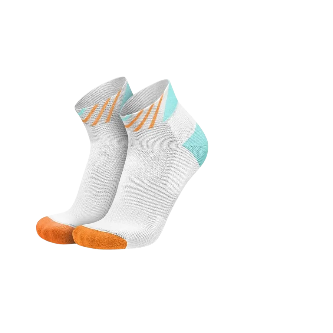 INCYLENCE Laufsocken sind aus der leichten Mikrofaser Microlon® gefertigt und garantieren die besten Eigenschaften, die unsere Laufsocken benötigen. Neben effektiven Moisture Management sind Atmungsaktivität und Wärmeregulierung herausragend. Darüber hinaus bieten verstärkte Bereiche unter dem Fuß, an der Ferse und den Zehen maximalen Komfort und eine lange Haltbarkeit. Der breite, doppelt gelegte Bund verhindert, dass Schweiß in den Schuh läuft und sitzt dabei angenehm fest ohne zu verrutschen. Die dünne Verarbeitung auf dem Fußrücken mit großflächiger Mesh-Struktur sorgt für beste Atmungsaktivität. Durch den integrierten Kompressionseinsatz am Mittelfuß wird ein fester, stabiler Sitz sichergestellt. Die verstärkte Zehenbox und die zusätzliche Dämpfung im Achillessehnen- und Fersenbereich schützen reizempfindliche Stellen und bieten somit besten Komfort und eine lange Haltbarkeit. Microlon® – haltbar | leicht | wärmeisolierend | atmungsaktiv | hygienisch | umweltfreundlich Doppelt gelegter Bund nimmt optimal Feuchtigkeit auf Kompression für verbesserte Durchblutung Perfekte Passform Solltest Du zwischen zwei Größen stehen, empfehlen wir Dir für eine optimale Passform die jeweils kleinere Größe zu nehmen. Material: 56% Polyamide Microlon® 39% Polyamide 5% Elastane Pflege Bei 30°C waschen Nicht im Wäschetrockner trocknen Nicht bügeln Farbe: Mint Orange