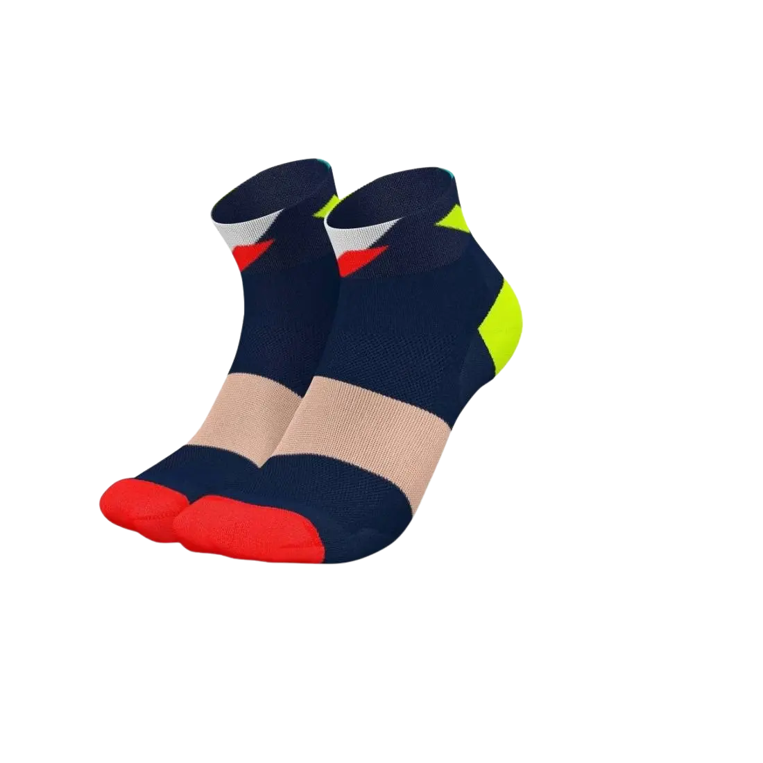 Mit den Incylence ULTRALIGHT STRIKES Laufsocken bist du nicht nur stylisch, sondern deine Füße sind bei jeglichen Bedingungen bestens versorgt. Mit der ultraleichten Mikrofaser Dryarn® bietet Incylence die besten Eigenschaften für hochgeschnittene Rad- und Laufsocken. Unübertroffene Atmungsaktivität und Wärmeregulierung bieten maximalen Komfort und herausragende Rad- und Laufleistung. Der breite, doppelt gelegte Bund verhindert, dass Schweiß in den Schuh läuft und sitzt dabei angenehm fest ohne zu verrutschen. Die dünne Verarbeitung auf dem Fußrücken – Mesh-Struktur – sorgt für beste Atmungsaktivität. Durch den integrierten Kompressionseinsatz am Mittelfuß wird ein fester, stabiler Sitz sichergestellt. Die verstärkte Zehenbox und die zusätzliche Dämpfung im Achillessehnen- und Fersenbereich schützen reizempfindliche Stellen und bieten somit besten Komfort und eine lange Haltbarkeit. Die Incylence ULTRALIGHT STRIKES SHORTS im Detail: Dryarn® – haltbar | leicht | wärmeisolierend | atmungsaktiv | hygienisch | umweltfreundlich Doppelt gelegter Bund nimmt optimal Feuchtigkeit auf Kompression für verbesserte Durchblutung Perfekte Passform Solltest Du zwischen zwei Größen stehen, empfehlen wir Dir für eine optimale Passform die jeweils kleinere Größe zu nehmen. Material: 50% Polyamide 45% Polypropylene Dryarn® 5% Elastane