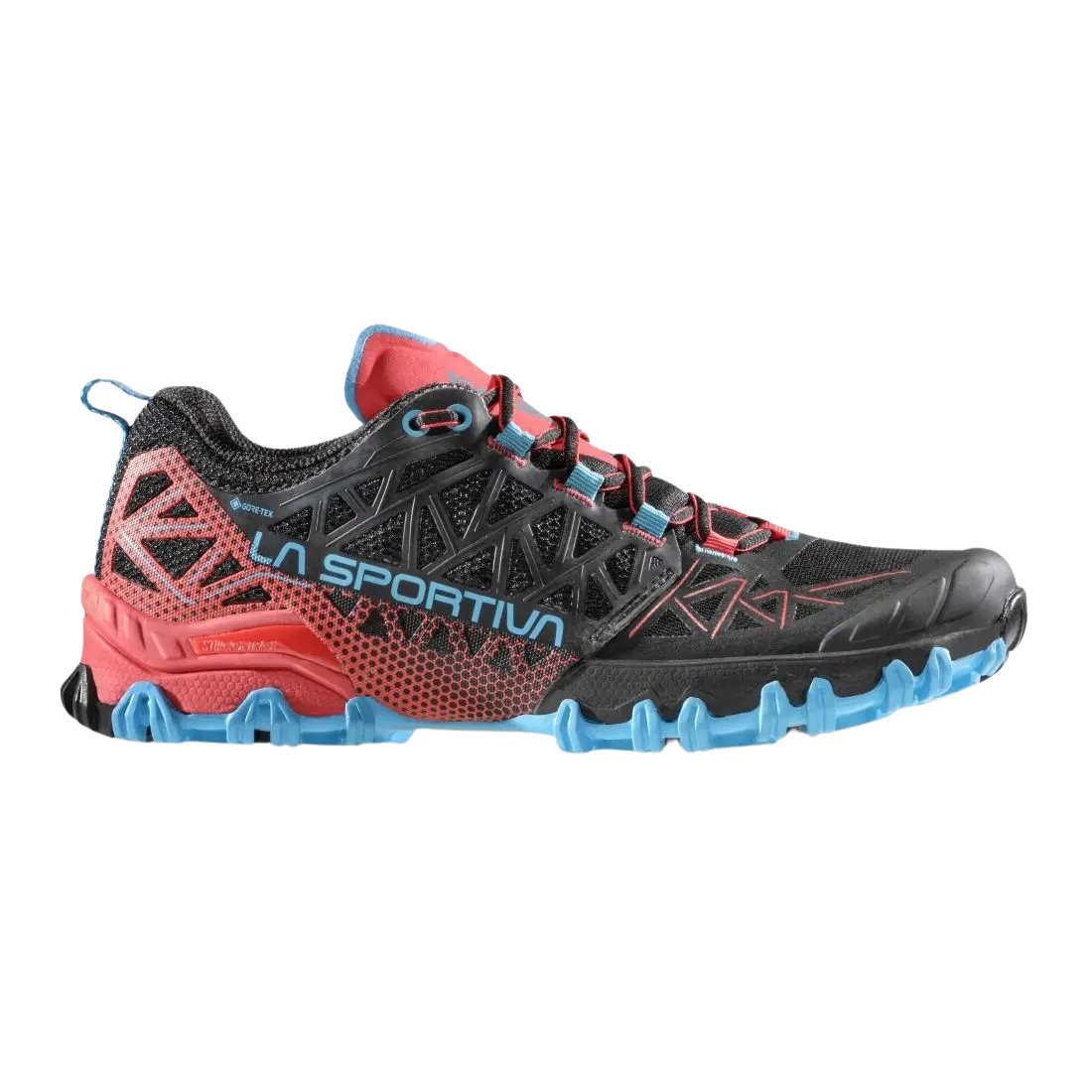 Der La Sportiva BUSHIDO II GTX Trailschuh für Damen – Technische und ästhetische Evolution von Bushido und das Schuhwerk für skyrunning Wettkämpfe: super leicht, gripig, aggressiv und garantiert für perfekte Stabilität bei jedem off-road Untergrund. Dank der STB Control Konstruktion reicht das TPU Skelett an der medialen Seite des Schaftes bis unter die Zwischensohle und stabilisiert so das Schuhwerk. Der Schuh umhüllt somit besser den Fuß und bietet mehr Stabilität durch die Zusammenarbeit von Schaft und Zwischensohle. Da auf schwere Stabilizer verzichtet werde kann, fällt der Schuh leichter aus. Die Sohle mit zweifach Gummimischung FriXion Red präsentiert differenzierte Oberflächen: die äußeren abgerundeten Noppen, welche seitlich bis zur Zwischensohle reichen, bilden einen graduellen Antrittwinkel am Boden, wobei auch bei extremer Torsion des Fußes die Stabilität beibehalten wird. Dadurch wird ein sicheres Laufen auch bei schwierigem Untergrund mit Wurzeln, Steinen und Ästen gewährleistet. Der Schuh bietet zudem maximaler Halt und Umhüllung im mittleren Bereich des Fußes und viel Bewegungsfreiheit und Komfort an der Spitze. Das Ergebnis ist ein Schuhwerk im puren La Sportiva Stil, welches neue Lösungen für anspruchsvolle Runners bietet. Mit der Version des klassischen Mountain Running-Modells aus Gore-Tex Invisible Fit™ – Membrane bleiben die Füße bei Wind und Wetter trocken. Vorteile des La Sportiva BUSHIDO II GTX für Damen: Clean construction mit möglichst wenig Nähten Schaft mit interner slip-on Konstruktion: umhüllt den Fuß wie eine Socke, ohne einzuengen oder Druckpunkte zu erzeugen Neue Ferse für maximale Passform und Komfort Verstärkung aus thermoplastischem Material sorgt für eine maximale Reibungs- und Abriebfestigkeit Sohle mit zweifach Gummimischung FriXion®-Red mit differenzierter Oberfläche für maximalen Grip bei jedem Untergrund GORE-Tex®-Membran mit atmungsaktiver, wasserdichter und flexibler Invisible-Fit™-Technologie Schaft: atmungsaktives Air Mesh, thermoplastischer Schutzfilm, mittleres Skelett aus TPU, HF an den rip-stop Paneelen Futter: Gore-Tex® Invisible Fit™ Zwischensohle: komprimierter EVA und Stability Control System Sohle: FriXion® Red Einlegsohle: Ortholite® Ergonomic Obermaterial: atmungsaktives Air-Mesh Schnürsenkel: aus 100% recyceltem Material Sprengung: 6mm Gewicht: 245g (Größe 42) Farbe: Black/Hibiskus