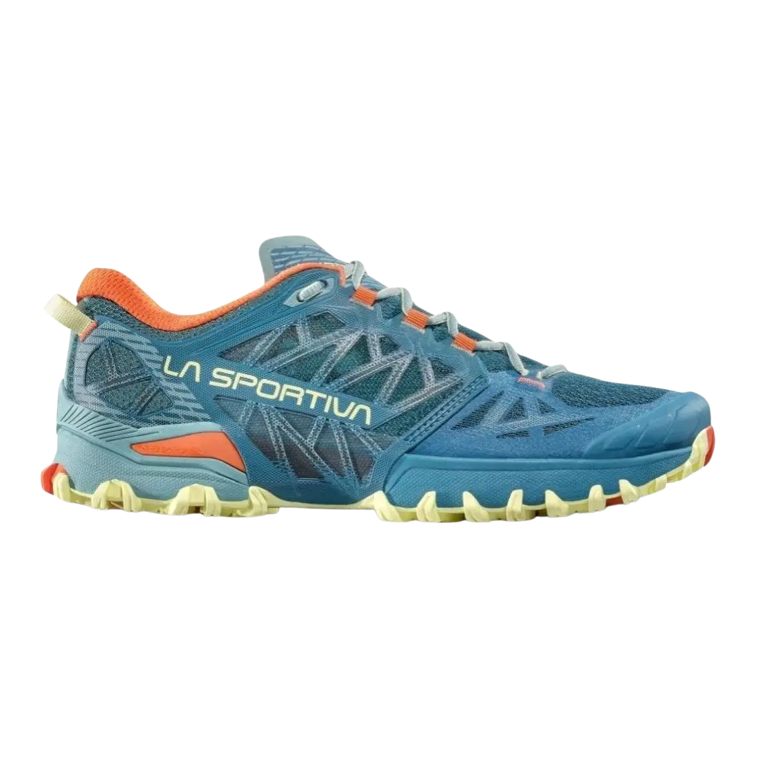 Vorhang auf für den La Sportiva Bushido III, eine Neuinterpretation des ikonischen Schuhs, der dem Skyrunning gewidmet ist: Griffig und kraftvoll, wurde er entwickelt, um perfekte Stabilität auf allen Arten von Offroad-Terrain zu gewährleisten. Die Details, die dazu führten, dass dieses Modell zu einem Bestseller in La Sportivas Kollektion wurde, wurden beibehalten und weiter verbessert: Die FriXion® Red Bi-Compound-Sohle erhöht die Griffigkeit dank der überarbeiteten Stollen, und die neue Konstruktion der Seitenpaneele bietet noch mehr Atmungsaktivität. Dank der STB Control Konstruktion reicht das TPU Skelett an der medialen Seite des Schaftes bis unter die Zwischensohle und stabilisiert so das Schuhwerk. Der Schuh umhüllt somit besser den Fuß und bietet mehr Stabilität durch die Zusammenarbeit von Schaft und Zwischensohle. Da auf schwere Stabilizer verzichtet werde kann, fällt der Schuh leichter aus. Der Schuh bietet maximalen Halt und Umhüllung im mittleren Bereich des Fußes und viel Bewegungsfreiheit und Komfort an der Spitze. Das Ergebnis ist ein Schuhwerk im puren La Sportiva Stil, welches neue Lösungen für anspruchsvolle Trailläuferinnen bietet. Tauche ein in die Fusion von ikonischem Design und modernster Technologie mit dem Bushido III – einem Schuh, der den Geist des Skyrunnings verkörpert und herausragende Leistung auf jedem Offroad-Abenteuer bietet. Betrete mit dem Bushido III das nächste Level des Trailrunnings, wo Griffigkeit, Stabilität und Atmungsaktivität nahtlos aufeinandertreffen. Produktdetails zum La Sportiva Bushido III für Damen: Obermaterial: Atmungsaktives Air Mesh mit Verstärkungen aus thermoplastischem Film Overlays aus TPU HF, auf Ripstop-Paneelen aufgebracht Futter: robust und abriebsicher aus recyceltem Material. Mittelsohle: EVA-Kompression + EVA-Dämpfungsplattform, Stability Control System und Geröll-Schutz-Einsatz Fußbett: ergonomisches Ortholite® Hybrid Mountain Running® Fußbett Sohle: Red Bi-Compound FriXion vegan und 100% recycelte Schnürsenkel Sprengung: 6mm Gewicht: 250g Farbe: Everglade / Zest