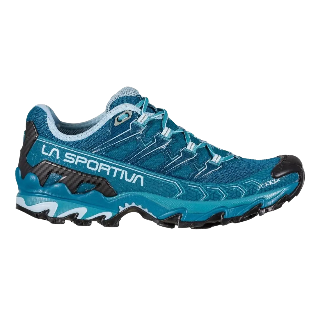 La Sportiva Ultra Raptor II Damen ist die Überarbeitung des beliebten Modells Ultra Raptor, ein Trailrunning-Schuh, der für off-road Strecken auf langen Distanzen und für ausgedehnte Trainingseinheiten entwickelt wurde. Das hoch atmungsaktive Obermaterial aus Air-Mesh-Gewebe hat eine integrierte dämpfende Platte „Endurance Platform“ aus weichem EVA mit differenzierter Stärke (größer auf der Spitze, kleiner auf der Ferse) für maximale Stoßaufnahme in jeder Situation und Reduktion des Ramp-Angles. Der hintere stabilisierende Ferseneinsatz erlaubt eine perfekte Kontrolle auf Querpassagen. Das Schnürsystem ist mit dem Obermaterial integriert, und zwar durch Ösen, die auf die inneren elastischen Gewebe genäht sind sowie durch Verstärkungen in Hartplastik auf dem äußeren Mesh: Dieses System ermöglicht eine Aufteilung der Spannung der Schnürung auf dem ganzen Obermaterial für maximalen Tragekomfort. Die Schnürsenkel und das Ortholite® Hybrid-Fußbett wurden außerdem aus recyceltem Material hergestellt. Ultra Raptor II ist auch als Komfort-Version wide-fit erhältlich, für Läufer mit breiteren Füßen. Das Ergebnis ist ein Ultrarunning-Schuh, der für mehrere Stunden getragen werden kann und geeignet ist für den Geländelauf auf jeglichem Terrain. Raptorize yourself, again. Vorteile des La Sportiva ULTRA RAPTOR II für Damen: Obermaterial aus sehr atmungsaktivem Air-Mesh-Gewebe Futter aus Mesh mit Einsatz aus reibungsfesten Mikrofasern Stabilisierender Ferseneinsatz hinten für Stabilisierung und für perfekte Kontrolle auf Querpassagen Endurance Platform-Einlage für mehr Dämpfung, Reduktion des Ramp-Angle und Rock-Guard-Effekt FriXion™ White-Sohle aus weicher XF-Mischung mit geprägtem Trail Bite Heel-Aufsatz für bessere Bremseigenschaften beim bergab laufen Perfekte Volumenregulierung und Umhüllung des Fußes dank des besonderen Schnürsystems mit Ösen, die auf der Innenseite des Obermaterials genäht und auf der Außenseite verstärkt sind: dieses System ermöglicht eine Aufteilung der Spannung der Schnürung auf dem ganzen Obermaterial Erhältlich auch als Komfort-Version WIDE FIT, für Läufer mit breiteren Füßen Schaft: Atmungsaktives Air-mesh mit Verstärkungsstreifen aus Mikrofiber mit reibungsfester Schicht + Endurance Platform: Obermaterial montiert auf einer Platte aus verdichtetem EVA Futter: Mesh + “Easy-in”-Einsatz aus PU Leder, um das Anziehen zu erleichtern und die Ferse zu stabilisieren Fussbett: Ortholite® Hybrid Mountain Running Zwischensohle: EVA für optimale Dämpfung Sohle: FriXion® White mit IBS und integrierten, stoßfesten Zehenkappen aus Gumm Grössen: 36-43 +½ Gewicht:295 g (half pair) Farbe: Ink/Topaz