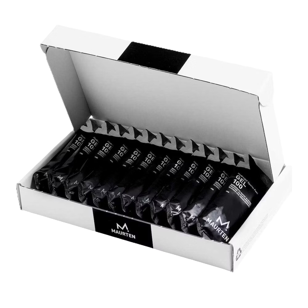 Maurten GEL 100 – Hydrogel basierendes Energiegel aus Kalzium, Elektrolyten und Kohlenhydraten. Eine Portion GEL 100 (kcal) enthält 25 g Kohlenhydrate. Das weltweit erste Energiegel. Laut Definition handelt es sich um ein Polymer das Salz, Kohlenhydrate und Wasser einkapselt. Maurten GEL 100 ist kein Sirup sondern ein Hydrogel. Neutral im Geschmack. Das ist das welterste Energiegel. Eine gewagte Aussage, aber nichtsdestotrotz die Wahrheit. Aus technischer Sicht handelt es sich bei herkömmlichen “Gels” um Sirups – Mischungen aus Wasser und Kohlenhydraten, oftmals mit zugesetzten Geschmacks- und Konservierungsstoffen. GEL 100 ist vollkommen anders. Es ist ein Hydrogel – eine Biopolymer Matrix, mit einer einzigartigen Glukose zu Fruktose Zusammensetzung (Verhältnis 0,8 : 1) die die verträgliche Aufnahme von bis zu 100 Gramm Kohlenhydrate pro Stunde ermöglicht. GEL 100 macht sich die Hydrogel-Technologie zu Nutze und basiert auf sechs natürlichen Zutaten. Es besitzt keinerlei Farb- oder Konservierungsstoffe und ist in 40 g Portionen erhältlich die 60 % Kohlenhydrate enthalten – ein hohes Energie-Gewicht-Verhältnis. ANWENDUNG Gel kurz vor, während oder direkt nach der Aktivität konsumieren. ENERGIEGEHALT Verschiedene Studien haben gezeigt, dass unser Körper bis zu 90 Gramm Kohlenhydrate pro Stunde verarbeiten kann. FUNKTIONSWEISE GEL 100 basiert auf der Hydrogel-Technologie*. Hydrogel ermöglicht einen reibungslosen Transport der Kohlenhydrate vom Magen zum Darm, wo Wasser, Salz und Kohlenhydrate absorbiert werden. *Patent ausstehend. Ist Maurten nur für Spitzensport gedacht? Nein. Unsere Produkte sind für alle geeignet, von Eliteathleten bis zu Hobbysportlern. ERFOLGE – Die Siegerinnen und Sieger der folgenden Wettbewerbe nutzten Maurten: Europarekord Marathon 2017 (M) Weltrekord 100 Meilen 2017 (F) New York City-Marathon 2017 (M) Chicago-Marathon 2017 (M) Berlin-Marathon 2017 (M&F) Marathon-Weltmeisterschaft 2017 (M&F) 10.000m-Weltmeisterschaft 2017 (M) Breaking2-Marathon, Monza (Eliud Kipchoge, 02:00:25) London-Marathon 2017 (M) Boston-Marathon 2017 (M) Tokio-Marathon 2017 (M) New York City-Marathon 2016 (M) Berlin-Marathon 2016 (M) GEL100 von Maurten ist ein Energiegel auf Hydrogelbasis. Neutral im Geschmack. Inhaltsstoffe Anteilig: Wasser, Glukose, Fruktose, Geliermittel, Kalziumcarbonat, Gluconsäure, Natriumalginat. Nährwertangaben: siehe Bilder Unter Schutzatmosphäre verpackt. Inhalt: 1 Portion à 25g Bei Zimmertemperatur aufbewahren. Mindestens Haltbar bis Ende: siehe Packungsseite.
