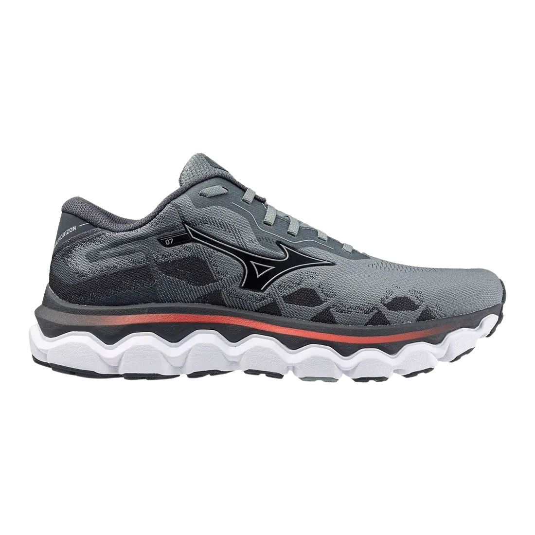 Mit dem Mizuno WAVE HORIZON 7 Herren Laufschuh schwebst du förmlich durch deine Läufe, er ist mit erstklassigen Features wie MIZUNO ENERZY CORE / MIZUNO ENERZY ausgestattet, diese sorgen für weiche Dämpfung und hohe Energierückgabe. Außerdem besitzt er eine weiche Passform und sorgt durch das Smooth Stretch Woven für eine korrekte Fußposition. Das asymmetrische MIZUNO WAVE und die integrierte Gummiwand sowie die breite Außensohle verbessern die Stabilität, ohne die Dämpfung zu reduzieren. Weitere Details zum Mizuno WAVE HORIZON 7 Herren Laufschuh: Neu konstruierte Zwischensohle mit MIZUNO ENERZY CORE + MIZUNO ENERZY: Verbesserte Dämpfung und höhere Energierückgabe Asymmetrische MIZUNO WAVE: Unterstützt deinen Lauf bei zu starker Pronation Verlängerte MIZUNO WAVE + verbreiterte Außensohle: Neuartiges Stabilitätsgefühl, ohne auf eine Top-Dämpfung zu verzichten Mehr als 50 % recycelter Anteil im Textil des Obermaterials. Mehr als 90 % recycelter Anteil im Futtertextil des Obermaterials und der Einlegesohle Gewicht: 335g Sprengung: 8mm Farbe: Lead | Nickel | Cayenne