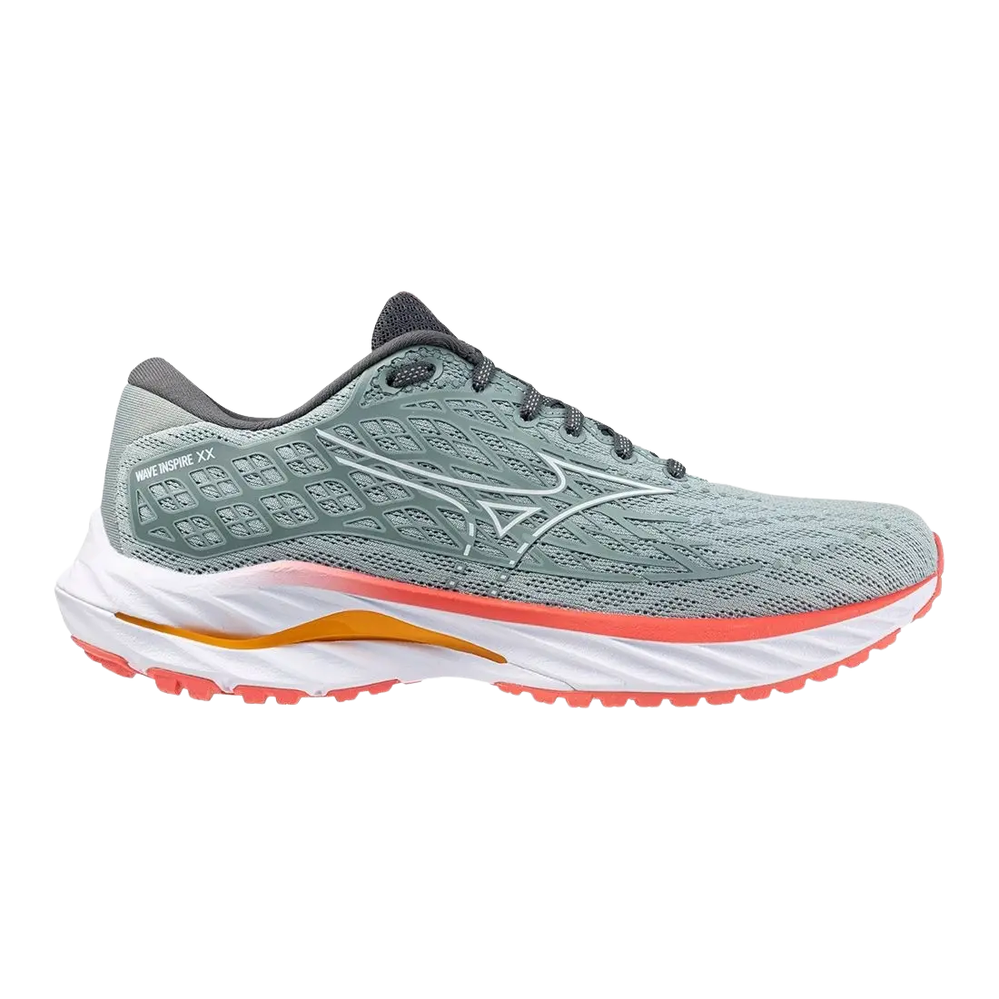 Der Mizuno WAVE INSPIRE 20 Damen Laufschuh ist perfekt für Läuferinnen und Läufer mit Überpronation und alle anderen, die einen tollen Laufschuh suchen. Er verfügt über die MIZUNO WAVE-Form für Stabilität, die ein Einknicken des Fußgewölbes verhindert. Die anatomische Form der Sohle ermöglicht eine sanfte Gewichtsverlagerung vom Bodenkontakt bis zum Abstoß. Der MIZUNO ENERZY FOAM in der gesamten Mittelsohle sorgt für hervorragende Dämpfung und Energierückgabe. Weitere Details zum Mizuno WAVE INSPIRE 20 Damen Laufschuh: MIZUNO ENERZY SCHAUMSTOFF: Gesamte Mittelsohle aus MIZUNO ENERZY, sorgt für hervorragende Dämpfung und Energierückgabe. MIZUNO WAVE (Stützform): Die Wellenform wurde für Personen mit Überpronation entwickelt. Durch den Wechsel von Innen- und Außenform wird ein Einknicken des Fußgewölbes verhindert und eine hohe Stabilität erreicht. Die anatomische Form der Platte folgt der Form des Fußes und sorgt für eine reibungslose Gewichtsverlagerung vom Bodenkontakt bis zum Abstoß. Über 90 % recycling Anteil im Futtertextil des Obermaterials / in der Einlegesohle Über 70 % recycling Anteil im Textil des Obermaterials Wave Plate auf pflanzlicher Basis, hergestellt aus Elastollan® N-Serie. Gewicht: 245g Sprengung: 12mm Farbe: Gray Mist | White | Dubarry